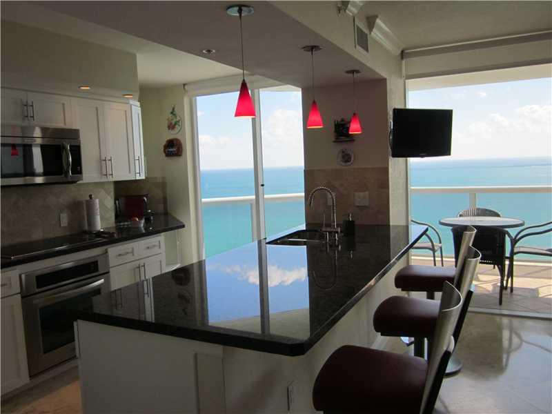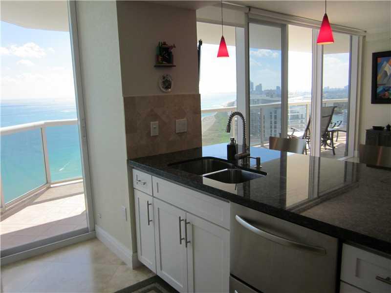 Spectacular direct ocean view from this beautiful, completely updated 31st floor condo in luxurious bldg. Open floor plan w/floor to ceiling doors & windows w/marble floors throughout. Beautiful, open kitchen w/ wood cabinets, granite countertop & SS appl iances. Both bdrms have gorgeous oceanviews.Master is very spacious w/ walk-in closets & luxurious bathroom. Balcony wraps around w/views of the ocean, Intracoastal & city. Full service bldg with 24/7 concierge, valet & security. Fitness center, sauna +++
