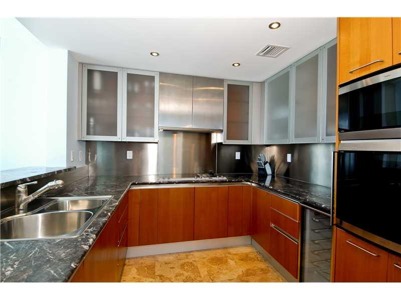 Unobstructed views of Star Island, Biscayne Bay, & Downtown Miami. This 1 bedroom + den 2 bath residence features a 40ft wide balcony. The kitchen features a Sub-zero refrigerator, Gaggenau oven & stovetop, granite counter tops, & built-in steamer. A form al dining area. The master bedrm has direct entryway to terrace. The den may easily be used as a second bedrm. Marble flrs throughout. Master bath offers separate roman tub & shower. Valet parking, pool, hot tubs, gym & restaurant. Publix is 1 block away.