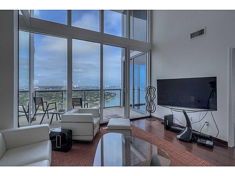 Breathtaking views from this two-floor penthouse in the sky. Featuring 1,920 SQ FT this 2 bed / 2.5 bath condo offers soaring 20' ceilings with panoramic and unobstructed views of Biscayne Bay and Downtown Miami. Italian cabinetry, granite counter tops, S /S appliances, Terrazzo flooring in kitchen, Cherry wood floors in living area. Located steps from the Design District and Midtown Miami and only minutes to South Beach and Downtown Miami. Enjoy the many world class amenities of the BLUE condo.