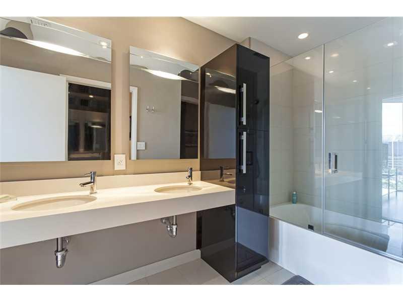 A private elevator opens to a unit of exquisite decor and stunning finishes. Floor-to-ceiling windows offer sweeping views of Miami Beach and the Bay. Features include Nest Home thermostat, Sub Zero and Wolf stainless steel appliances, porcelanosa tiled floors and upgraded light fixtures. Master Suite includes matching sliding glass doors, custom closets along with Master Bathroom which features a Kohler Master Shower with DTV-2 Custom Showering Experience.