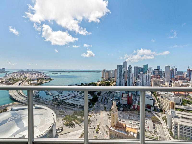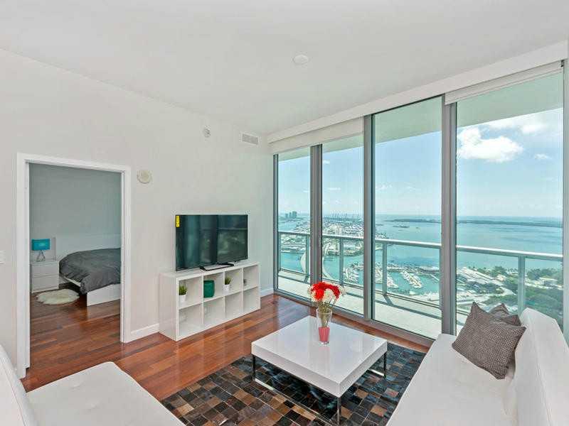 Stunning direct and obstructed view from the Living and Master Bedroom at the 48th floor; overlooking Biscayne Bay, Downtown Miami City Lights and Miami Beach. Top of the line excersice room and pool area which includes a beach volleyball court. Califor nia closet in the master bedroom, blackout shades, stainless steel appliances. wood floors, etc.
