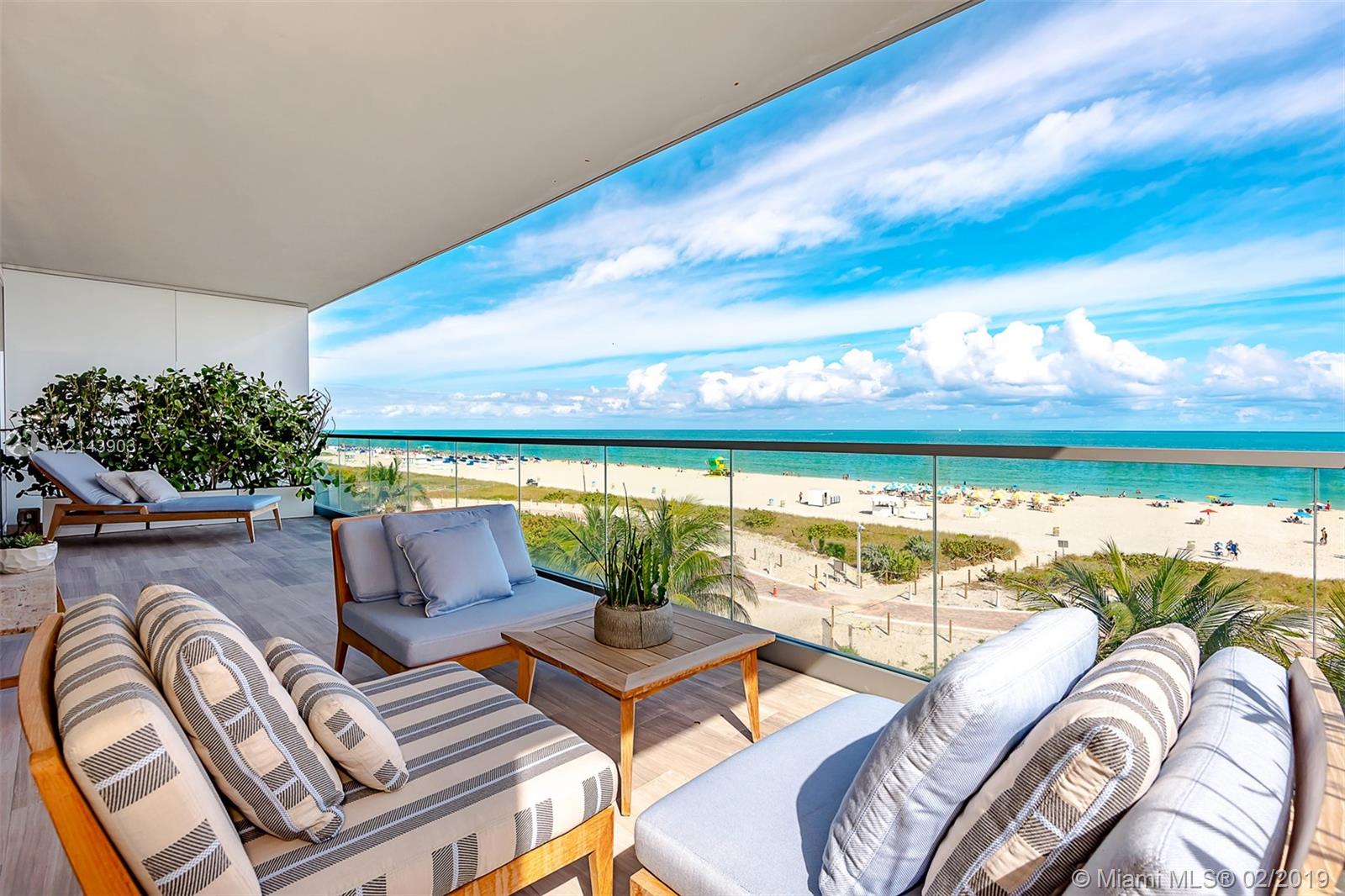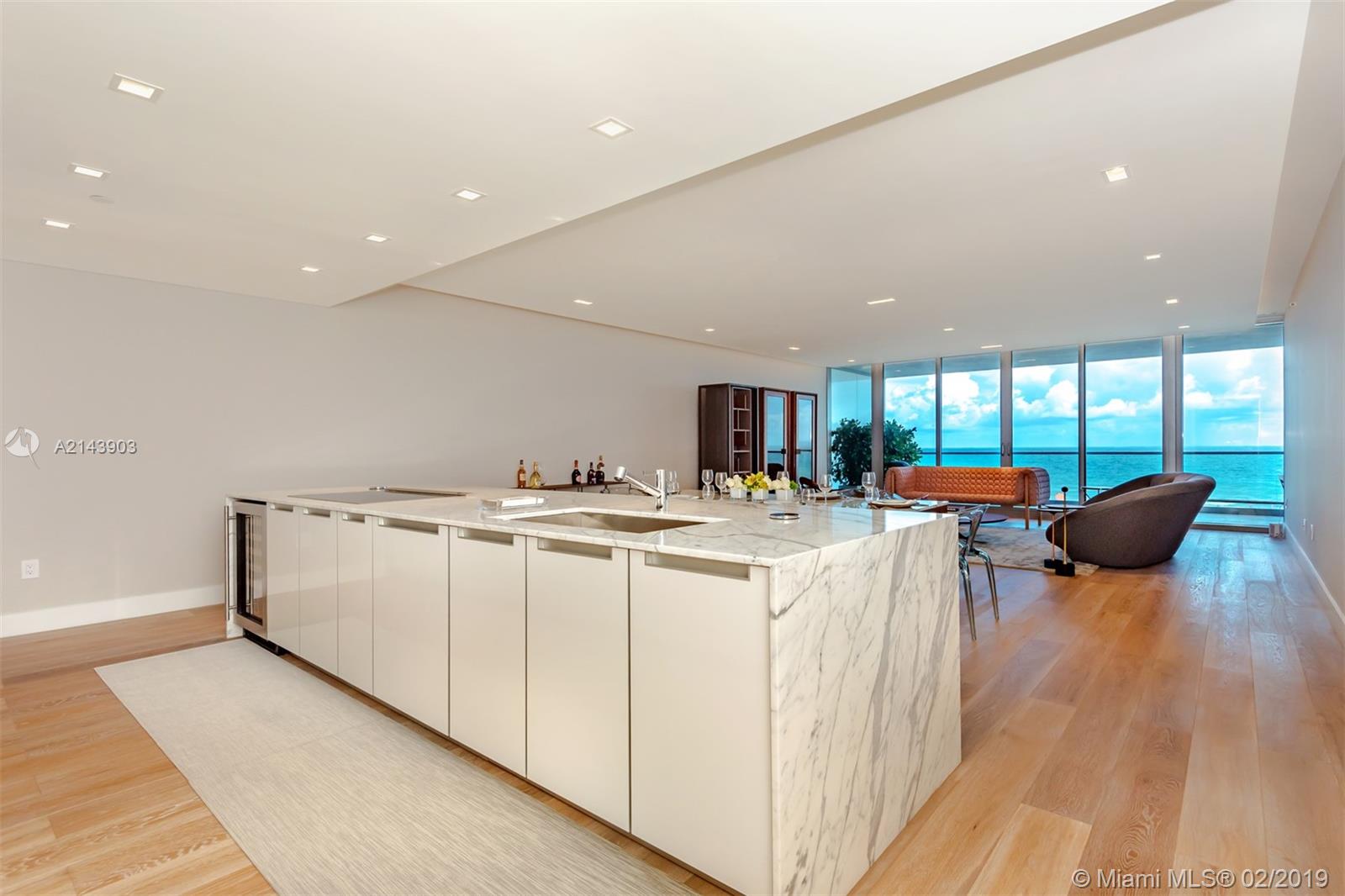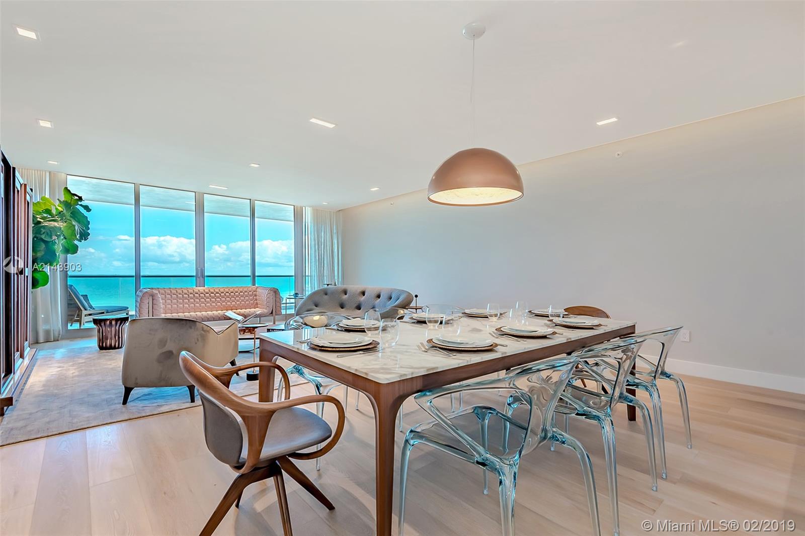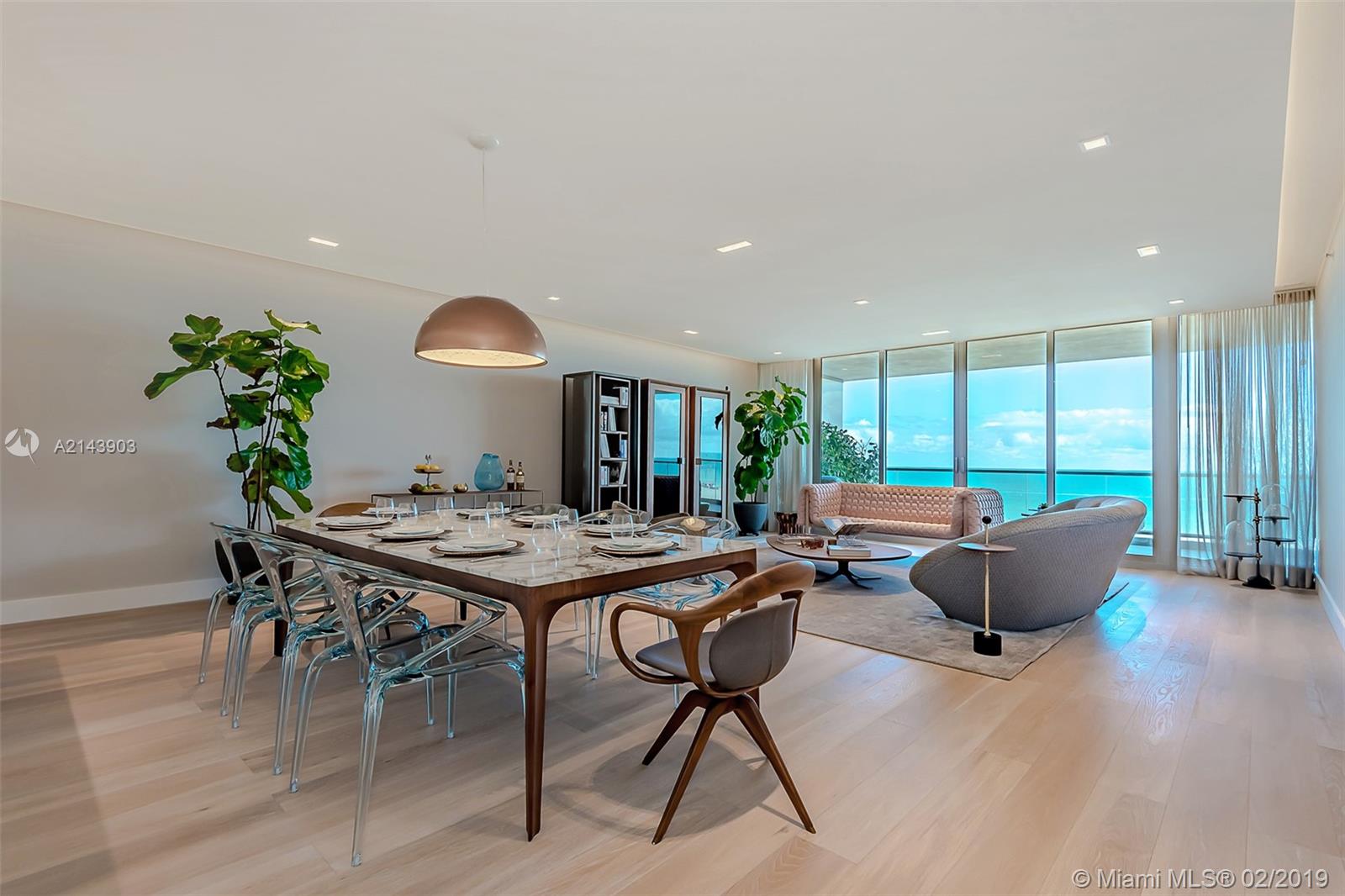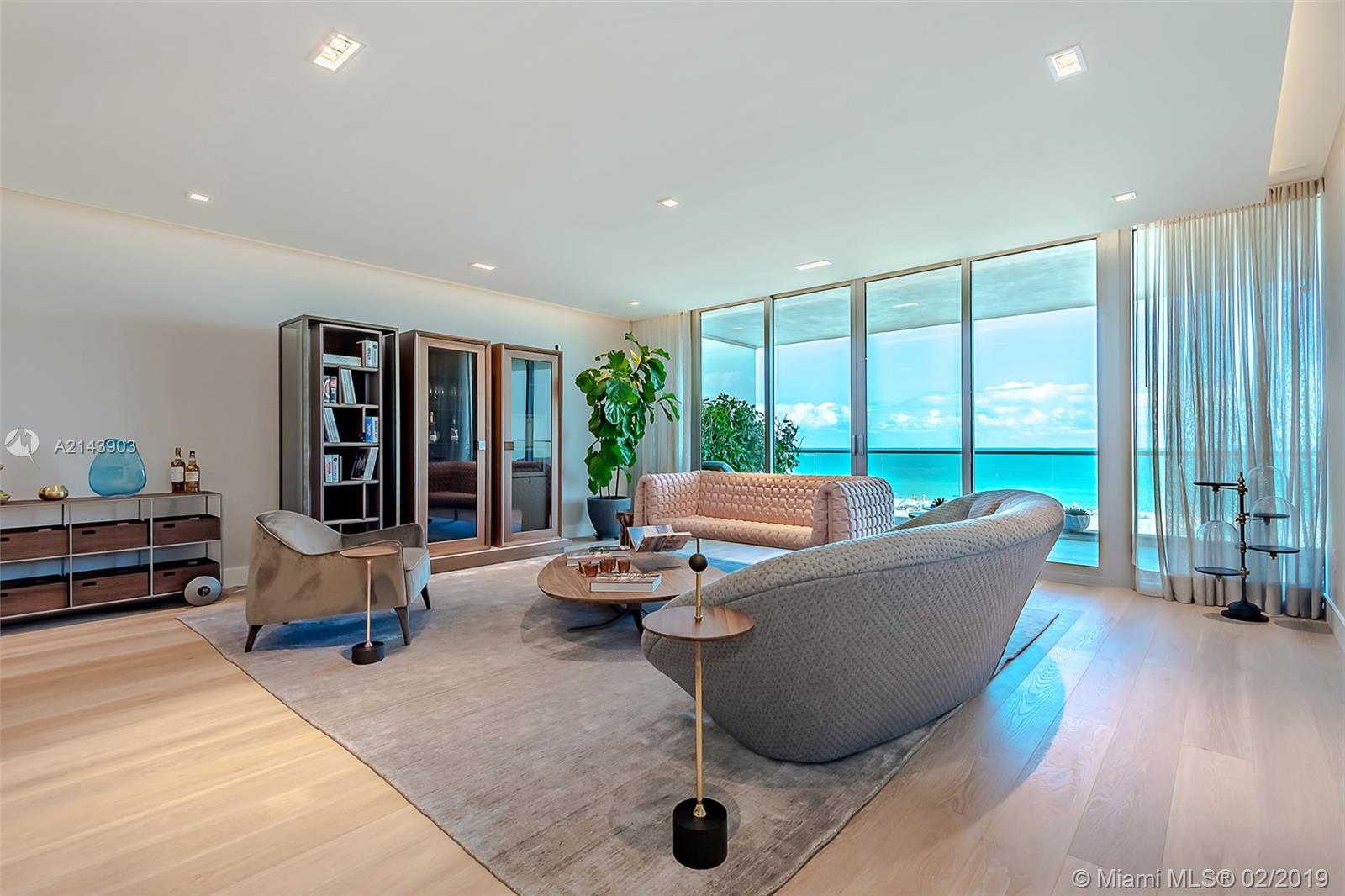 A private elevator opens up into this 4/4.5+Den. High ceilings, floor-to-ceiling glass & 10' deep terraces with direct ocean views. Open gourmet kitchen with sleek Poggenpohl cabinets, Gaggenau & Sub Zero appliances. Wood floors throughout. Signature amenities include beachfront infinity pool, library/lounge, fitness center, beach service, 24 hour valet, concierge and security. Architect: Enrique Norton.