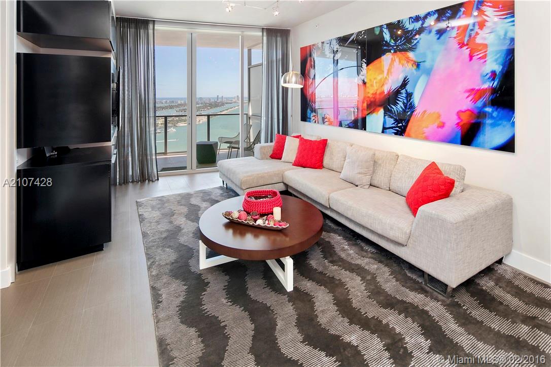 Direct, unobstruced bay and ocean views from this impeccably furnished sky residence. Step out of your very own private elevator directly into this 2 bedroom, 2.5 bathroom located on the 40th floor. Highend custom furnishings, humidor, wine fridge, porcelain floors, imported exotic wood cabinetry, gourmet kitchens with quartz countertops and oversized terraces. Located in the middle of it all! Drastically reduced. If you are looking for the ultimate Miami condo you have found it.