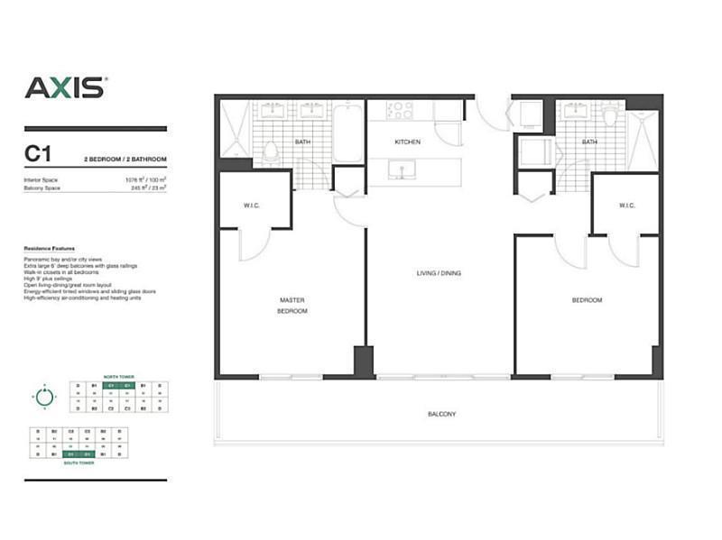 ****MOTIVATED SELLER****, RENOVATED FLOORING. Excellent location two bedroom unit in The Axis North Tower. North exposure with street and city views. Unit has european kitchen with granite counter top and stainless steel appliances . Building Complex offe rs fitness center , gym, pool.