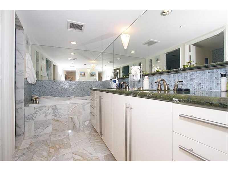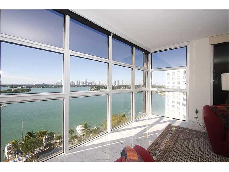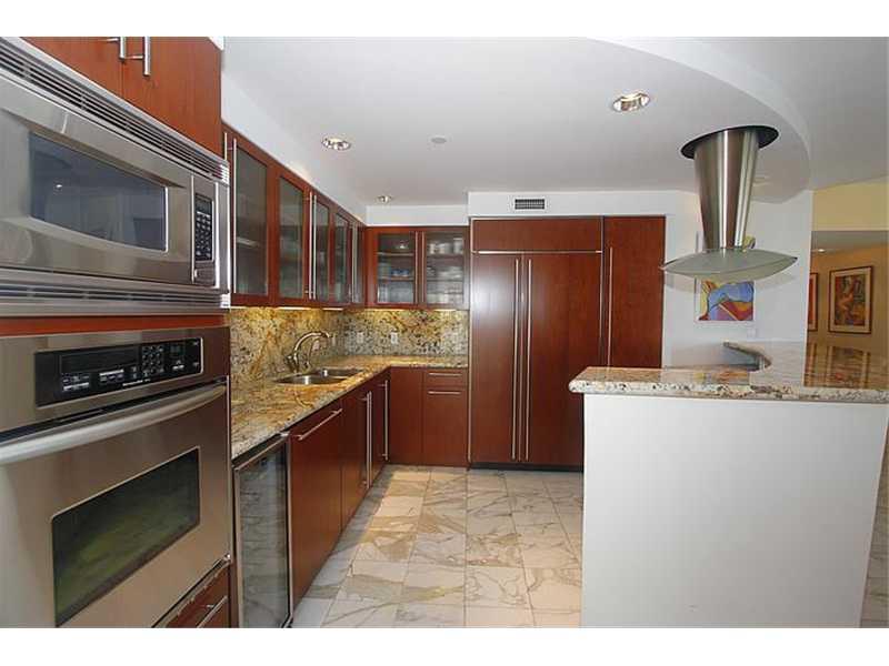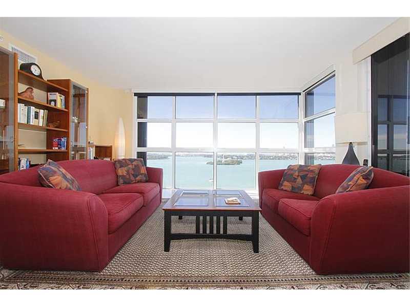 Rarely available corner 01 unit @ 9 Island. Smartly remodeled, this pristine 2 BR/ 2.5 BA offers spectacular bay & downtown views. Features include a small den/office, open gourmet kitchen with SubZero/KitchenAid appliances, Italian cabinets, marble flo ors. Huge master bath w/shower, jacuzzi, bidet & 2 sinks. New a/c. Incredible closet space + storage locker across the hall. 2 adjacent parking spaces, hurricane shutters & electric solar shades throughout; large balcony. Dogs up to 25 lbs & rentals ok.