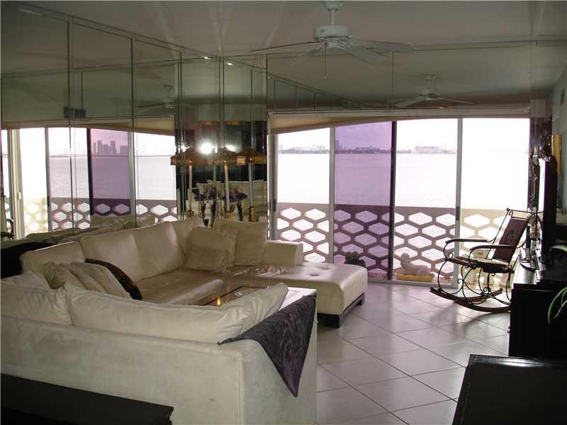Gorgeous sunsets & direct water views in well established courtyard 3/2 condo. Large and camera monitored lobby, big & impeccably maintained garden with pool & deck facing the Bay, downtown Miami, South Beach, & Port. Apartment features 3 full bedrooms, t iled floors throughout, huge walk-in closet, and lots of closet space. Views of the Bay from living room & bedrooms. Excellent residential neighborhood, assigned parking, and affordable HOA fees. Enjoy island living at a great place.