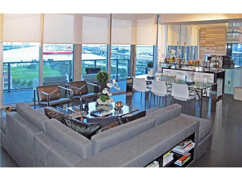 A must-see, one-of-a-kind property. Arguably the most spectacular 3/3 unit in the building -- very reasonably priced! Magnificently finished from floor to ceiling. Impressive foyer, glass-wall study, dramatic hallway with art niche, mirrored bar, enlarged master closet, numerous custom accents and amazing views of Biscayne Bay & Museum Park. Custom made and stylish designed furniture included -- all you will need to bring is your toothbrush!