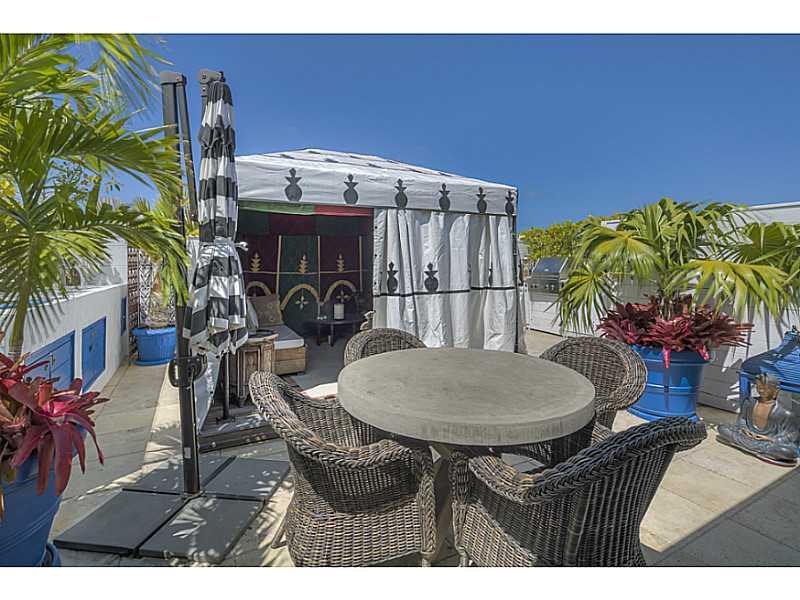 2 bedroom modern loft with direct access rooftop terrace. Extensively upgraded luxury with attention to every detail. Handcrafted finishes include custom kitchen, spa baths with claw foot tub and stone wall accents, wood floors, custom doors/molding & mor e. Balcony & private Ipe wood rooftop terrace, summer kitchen & panoramic views. Live in the sought after south of 5th Miami Beach neighborhood steps to the beach, shops, restaurants & park. Coveted 2 parking spaces. Easy to show.