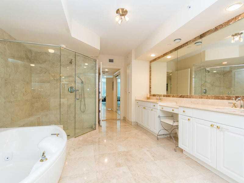 This 3,264 sf flow through unit is modern, elegant & a sophisticated masterpiece featuring 3 spacious bedrooms plus a large den, 3 full baths, a custom bar , stunning direct water views, an European kitchen, marble floors throughout, crown moldings, overs ized laundry room,storage unit, an abundance of natural light & privacy. Elevator opens direct to the residence with a private foyer. Hamptons South offers a state of the art spa, restaurant, tennis courts,movie theater, concierge and valet 24 hrs.