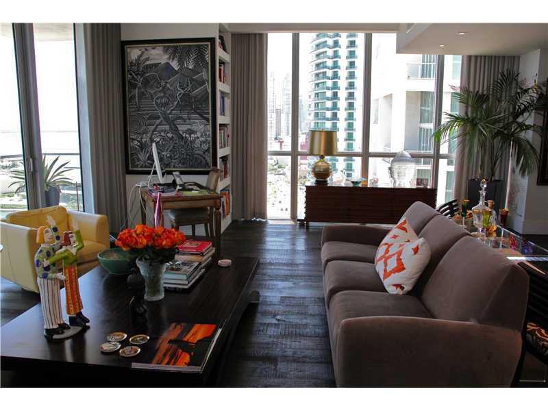 Gorgeous upscale corner unit with bay and ocean views. Minutes away from Brickell and Miami Beach. Custom Italian Snaidero kitchen laquered in Dove Grey, Ebony wide Plank Wood with Marble Floors, Motorized window treatments and california closets throu ghout. Secured elevator opening into the unit, spa, 2 pools, fitness center, lounge/bar, 24 hour doorman and concierge. Must see to appreciate all it has to offer.
