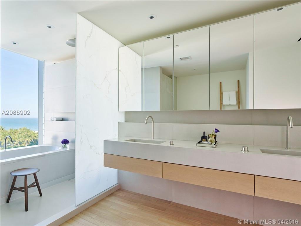 Designed by world renown architect, John Pawson, this 3 bedroom, 3.5 bathroom residence boasts 8.5’ floor-to-ceiling windows that lead to expansive terraces directly facing the Atlantic Ocean. Featuring a private entry foyer, Brazilian teak floors throughout, custom designed Bulthaup kitchens, translucent Italian white onyx and custom-cast concrete in the bathrooms. Residents enjoy 24-hour five star world-class services and amenities, poolside cabanas, resident-only beach club and much more.