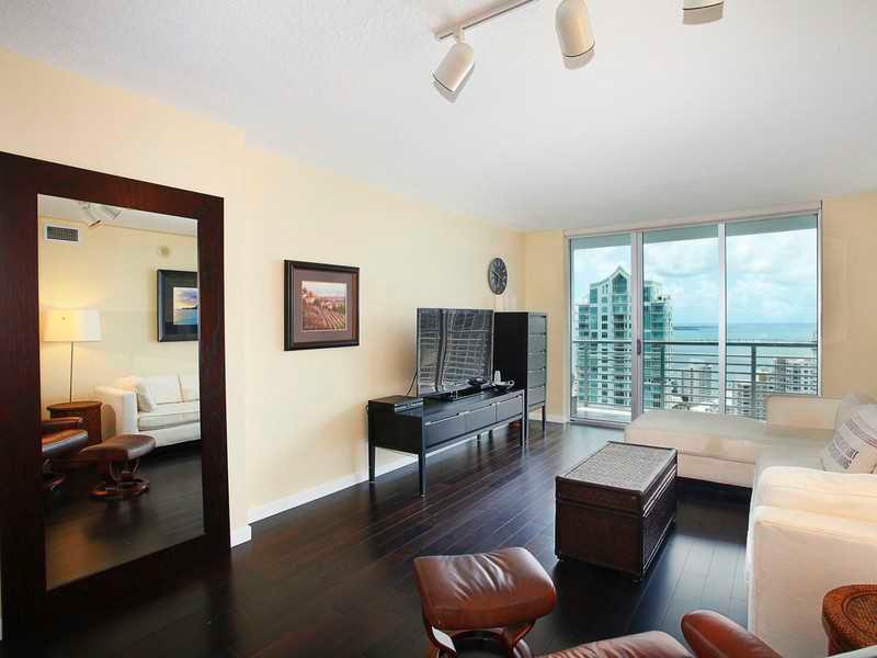 Upgraded 2 bedroom, 2 bathroom corner unit in One Miami overlooking Biscayne Bay and the Brickell Skyline. Unit boasts dark hardwood floors, an open kitchen/ living area, stainless steel appliances and a view from every room! Centrally located within minu tes to SoBe, Coconut Grove, Gables, UM University, Jackson Hospital and Airport. Walking distance to metro-mover, Mary Brickell Village and the AA Arena. Full amenity building.