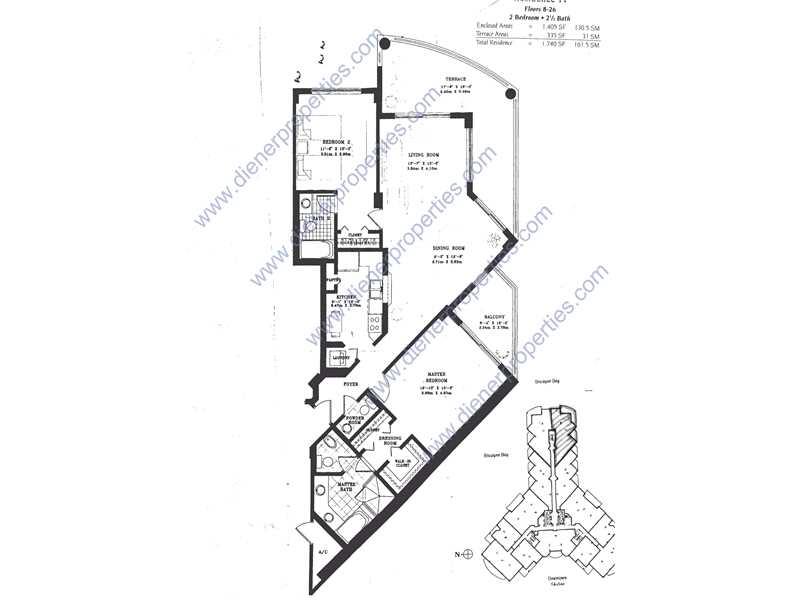 Beautiful & spacious unit with amazing unobstructed view directly to the ocean. Also view to palm trees and pool on the side. Huge wraparound balcony. Two bedrooms in split both w/bath in suite. Half bath. Master bath w/dual sinks, Jacuzzi, shower, bidet. Marble and wood floors. Kitchen w/granite & open window. Pool, BBQ, gym, sauna, squash & racquetball , 24 hrs. concierge, complementary valet. Enjoy the exclusive key & this luxurious building in the heart of Brickell. Ready to move in. Bring your offer!