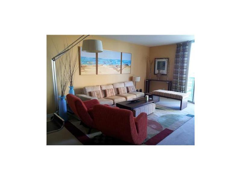 Great unit tastefully designed with built-in entertainment center, chic living room furniture and open kitchen with stainless steel appliances. Bathroom upgrades include Terrazzo floors/shower and Venetian plaster. Exclusive party and amenities deck w/ re creational and lap pools, fitness center, security, concierge, business center, valet, assigned parking and direct access to Miami Riverwalk. Stunning water view of Biscayne Bay, Downtown Miami Unit is currently rented till 10/31/2015 for 1900.00 monthly