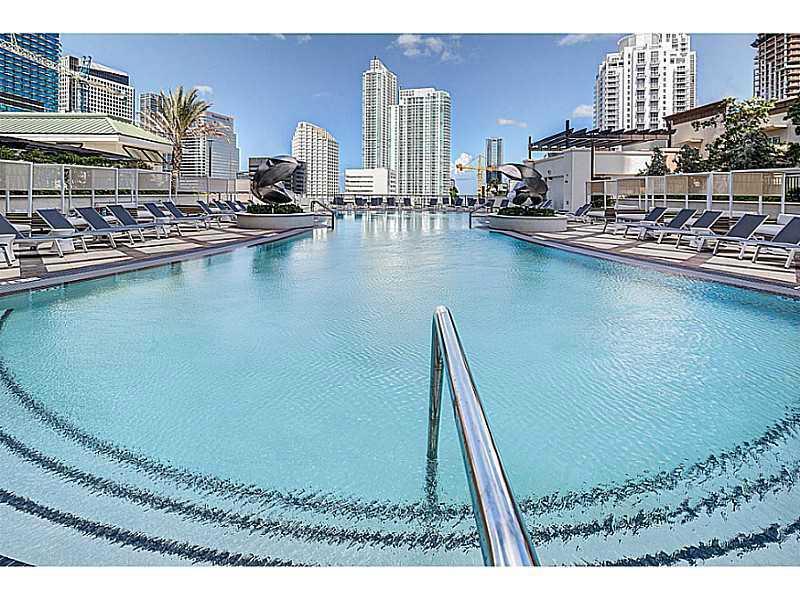 Last unit from the developer at Nine! Nine is located above the shops and restaurants of Mary Brickell Village. Unit features 10' ceilings, imported porcelain tile in a wood grain finish in the living room and kitchen, porcelain tile on the balcony, solar window shades and blackouts. Living room opens onto balcony with views of the one-acre pool deck and city skyline. Split floorplan with walk-in closet in both bedrooms. Full size washer and dryer. Master bath with dual sinks, shower and roman tub.