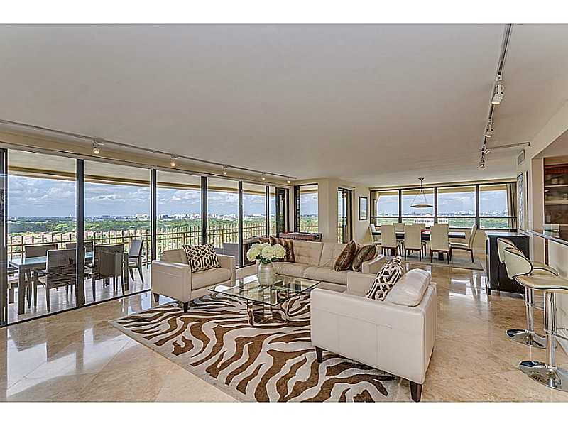 Panoramic vistas from this contemporary 18th floor corner unit. Beautifully updated w/ marble floors, large bedrooms, 2 terraces, lots of storage and totally updated baths. Updated kitchen opens to expansive living and entertaining area. Spacious master s uite has a private terrace, 2 large walk-in closets and luxurious master bath. Amenities include 24hr security, elegant yacht club, world class tennis & marina, fitness rooms, a gourmet restaurant and a bicycle and jogging path encircling the island.