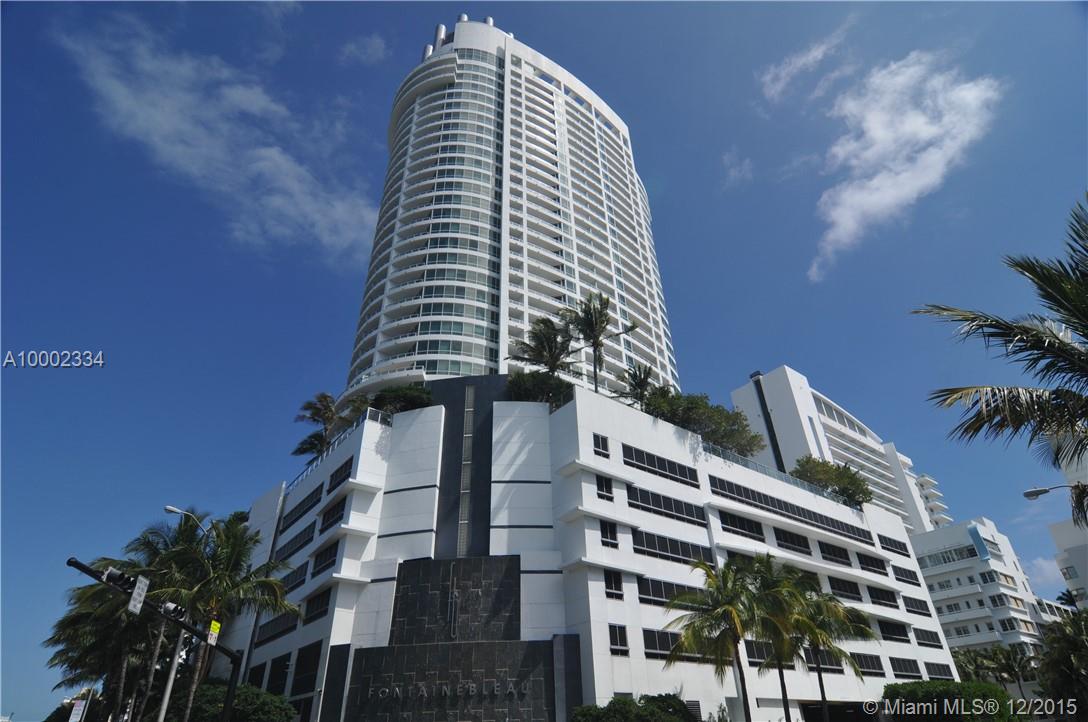 BEAUTIFUL 1 BEDROOM/2BATHS W/ OCEAN, BAY AND CITY VIEWS. OWNER HAS OPTION OF ENROLLING IN HOTEL RENTAL PROGRAM. USE IT PART-TIME & RECEIVE INCOME WHILE YOU'RE AWAY! FULLY FURNISHED TURNKEY WITH SLEEPER SOFA. FONTAINEBLEAU OFFERS 22 OCEANFRONT ACRES, MANY TOP RESTAURANTS, LIV NIGHT CLUB, 40,000SF STATE OF THE ART SPA & FITNESS CENTER. MAINTENANCE FEES INCLUDE: AC, LOCAL PHONES, ELECTRICITY, VALET AND DAILY FREE BREAKFAST IN OWNERS LOUNGE.