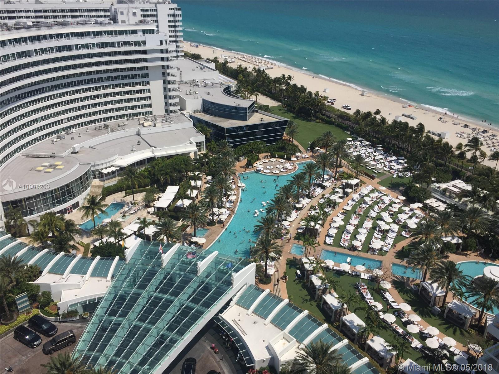 Beautiful 2BD/3BA with direct ocean, bay & hotel pool view at the Fontainebleau II. Enjoy full service, vacation-style living in a furnished turnkey unit with sleeper sofa & more. Enroll in hotel rental program & receive income while away! The Fontainebleau Resort offers luxury amenities on 22 oceanfront acres including award-winning restaurants, LIV night club, Lapis spa & state-of-the-art fitness center. Maintenance includes: AC, local calls, electricity, valet + daily free breakfast in the owner’s lounge.