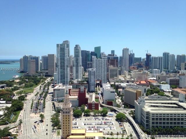 One of the most beautiful views in downtown! This 40th floor 1 bedroom 1.5 bathroom plus an enclosed den that can be used as a second bedroom or office, is very nicely updated with tile floors and elegant kitchen, SS Appliances. Vacation lifestyle with 2 pools, golf, volleyball. This unit has just been freshly painted and has new porcelain tile floors. Unit is empty and easy to see.