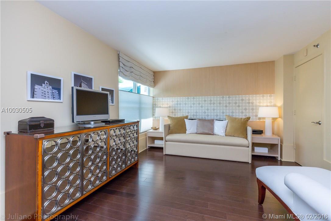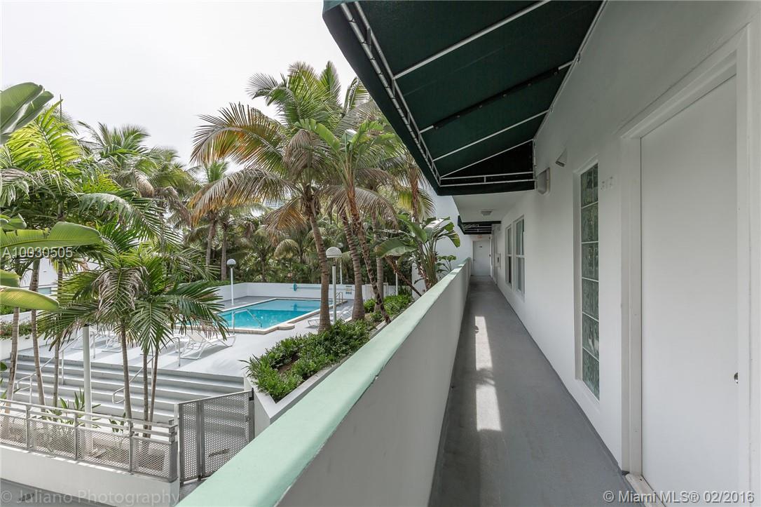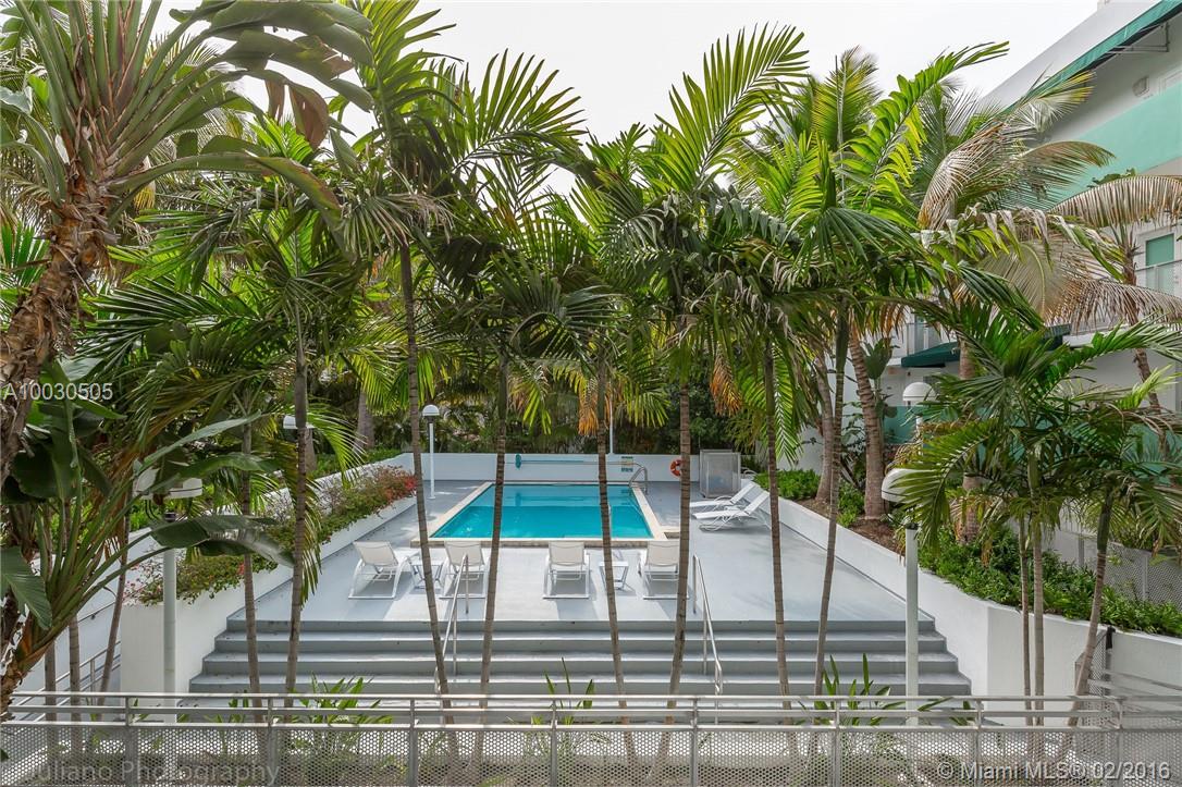 PRICE IMPROVMENT - Stylish South of Fifth Condo, modern two story condo located in a beautifully landscaped boutique building on a quiet street in the highly sought after SoFi neighborhood. This 2 Bedroom 2 Bath condo with updates offers hardwood flooring, stainless steel appliances and many custom built-ins. Unit also has it’s own w/d ,new central air and a landscaped private terrace with awning. Included 2 secured covered parking spaces, key coded gated entry, beautiful pool area,storage ,bike room.