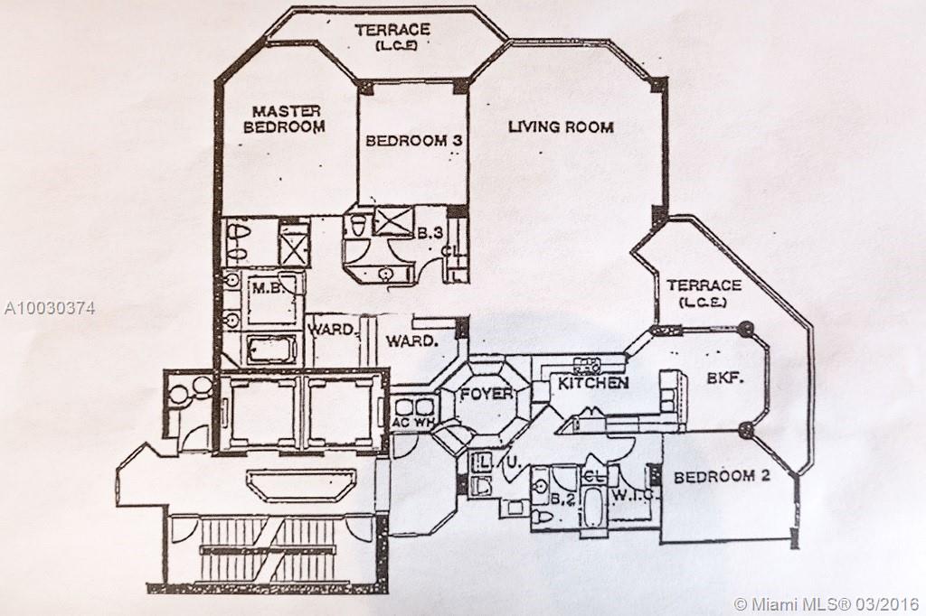Rarely available S.E. Corner 3 bedroom 3 bath + 2 terraces + 2 parking spaces. Extraordinary high-end finishes throughout the apt. Solid exotic wood and Granite slab floors. Venetian plaster walls .High gloss wood kitchen cabinets,Custom design walk-in closets, recessed lighting,coffered ceilings throughout the apartment and Hurricane shutters. Magnificent water views from every room. 25000 Sq Ft world class spa & gym included in maintenance.