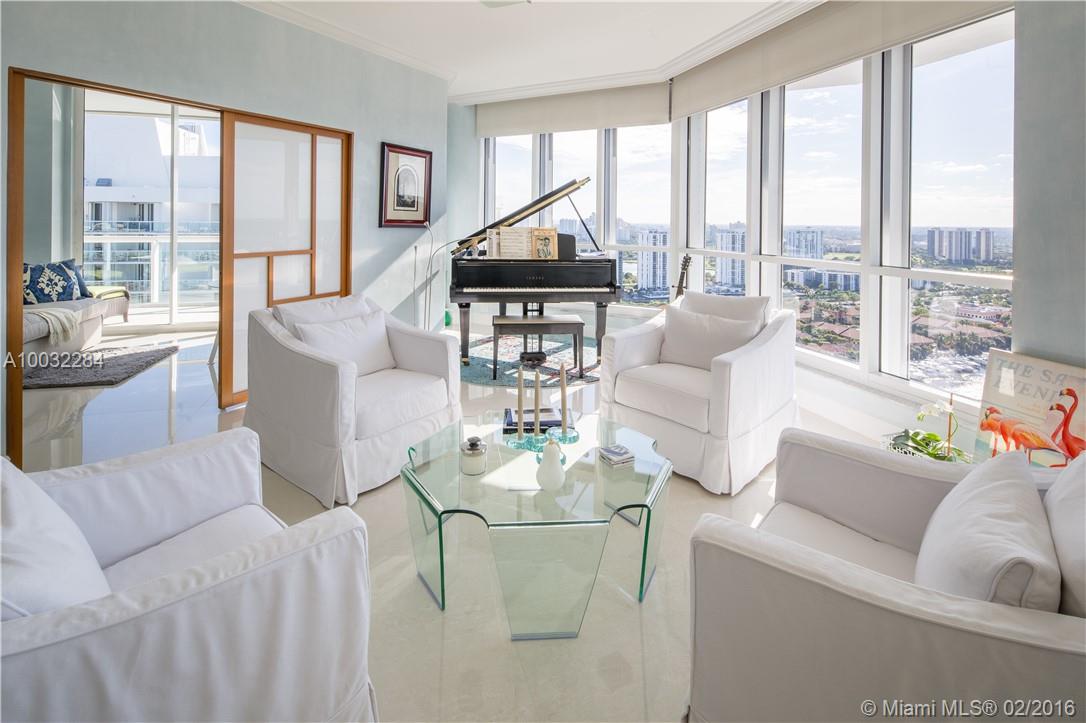 HUGE PRICE REDUCTION! Enjoy breathtaking views of the Ocean, Turnberry Golf Course, Waterways Marina & Gulfstream Racetrack from this immaculate Penthouse. 2 bedrooms, a den, 2.5 baths, new gourmet kitchen with top of the line Thermador appliances, 80 btl. wine cooler, abundant natural light, 3 terraces & 2 premium parking spots. World class amenities include a newly renovated full-service spa & fitness center, 3 swimming pools, kid's pool & playground, lighted tennis courts, social room & The Spa Cafe.