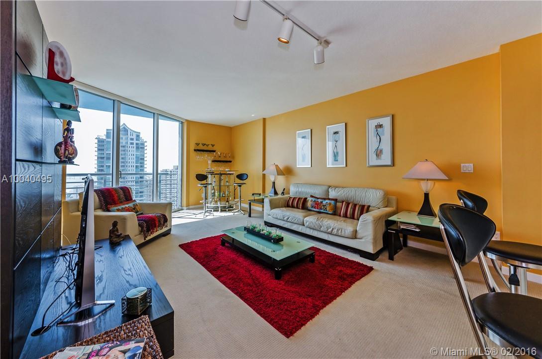 Amazing unobstructed Waterfront views of Biscayne Bay. One Miami East tower on the 36th floor with balcony! All appliances including wine cooler and washer/dryer inside unit. Closet organizers. 1 assigned parking plus 2nd car valet at $ 100/month. Condo fee of $ 421/mo includes gym, pool, party room, conference room, concierge and all amenities. Seller will give $2000 credit towards new carpeting.