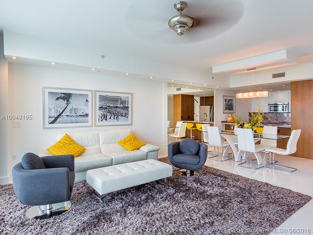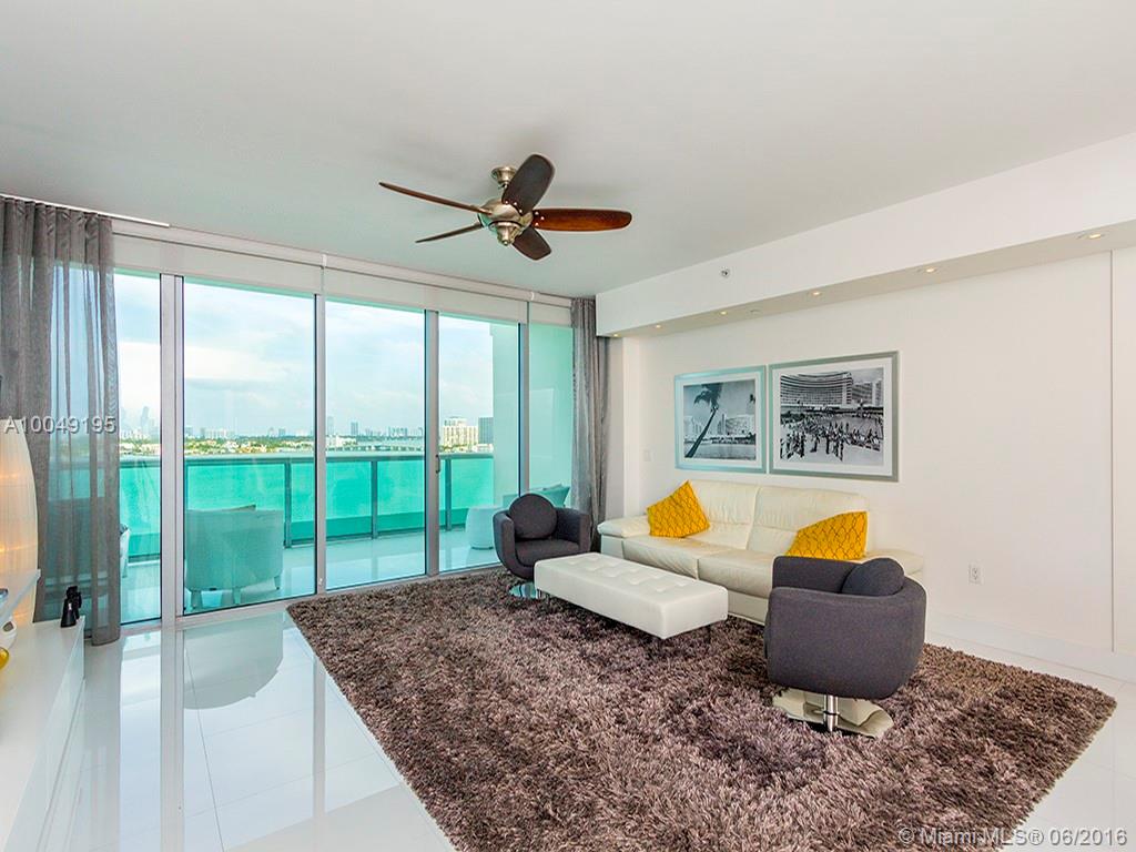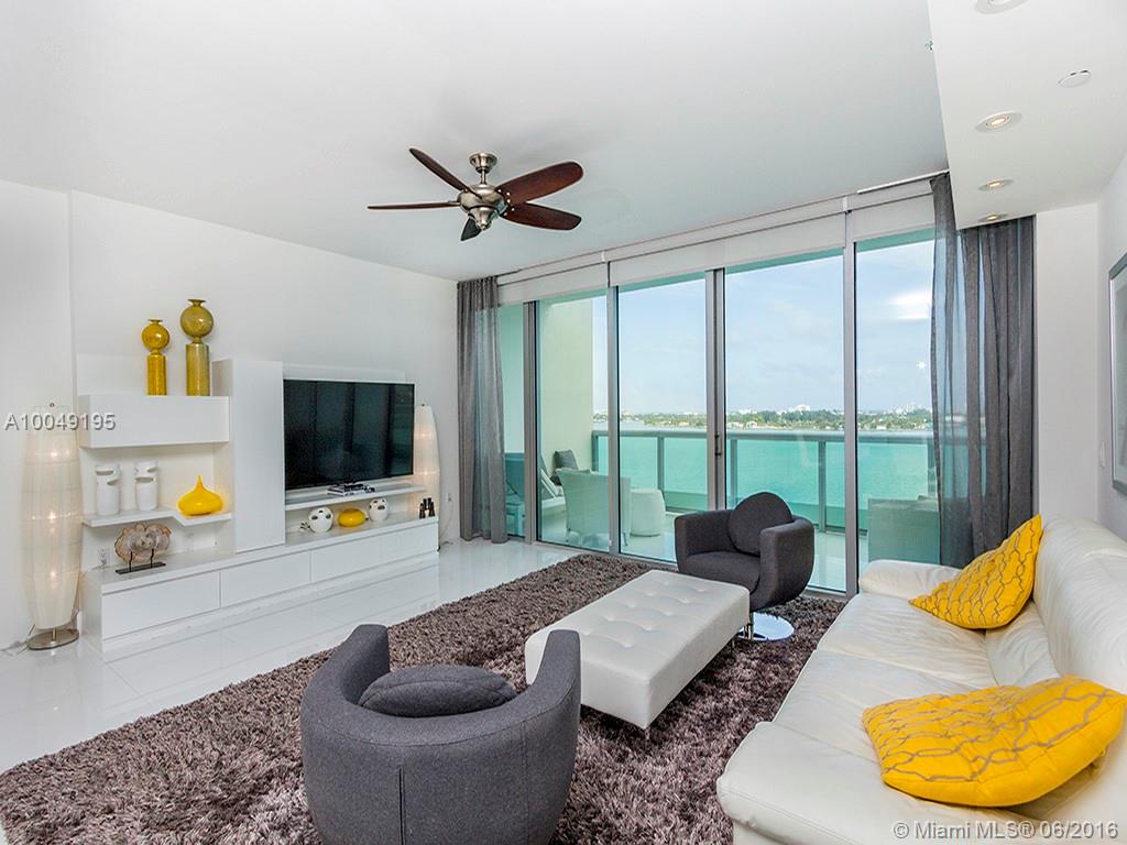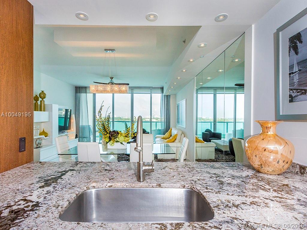 Ultra-modern Steven G designed 1884 sq ft split level with expansive Bay views. 2 Bedrooms + Den, 2 full Baths and 1 half Bath. Watch yachts pass from two balconies located on both lower and upper levels. Great interior flow-through design w/upgraded appliances, custom mirrors & designer furniture throughout. Elevator brings you to private foyer entrance. Dock space available. Enjoy pool overlooking Bay and Miami Beach. Full Security, gym and two assigned parking spaces on 1st floor. Turn-Key!!