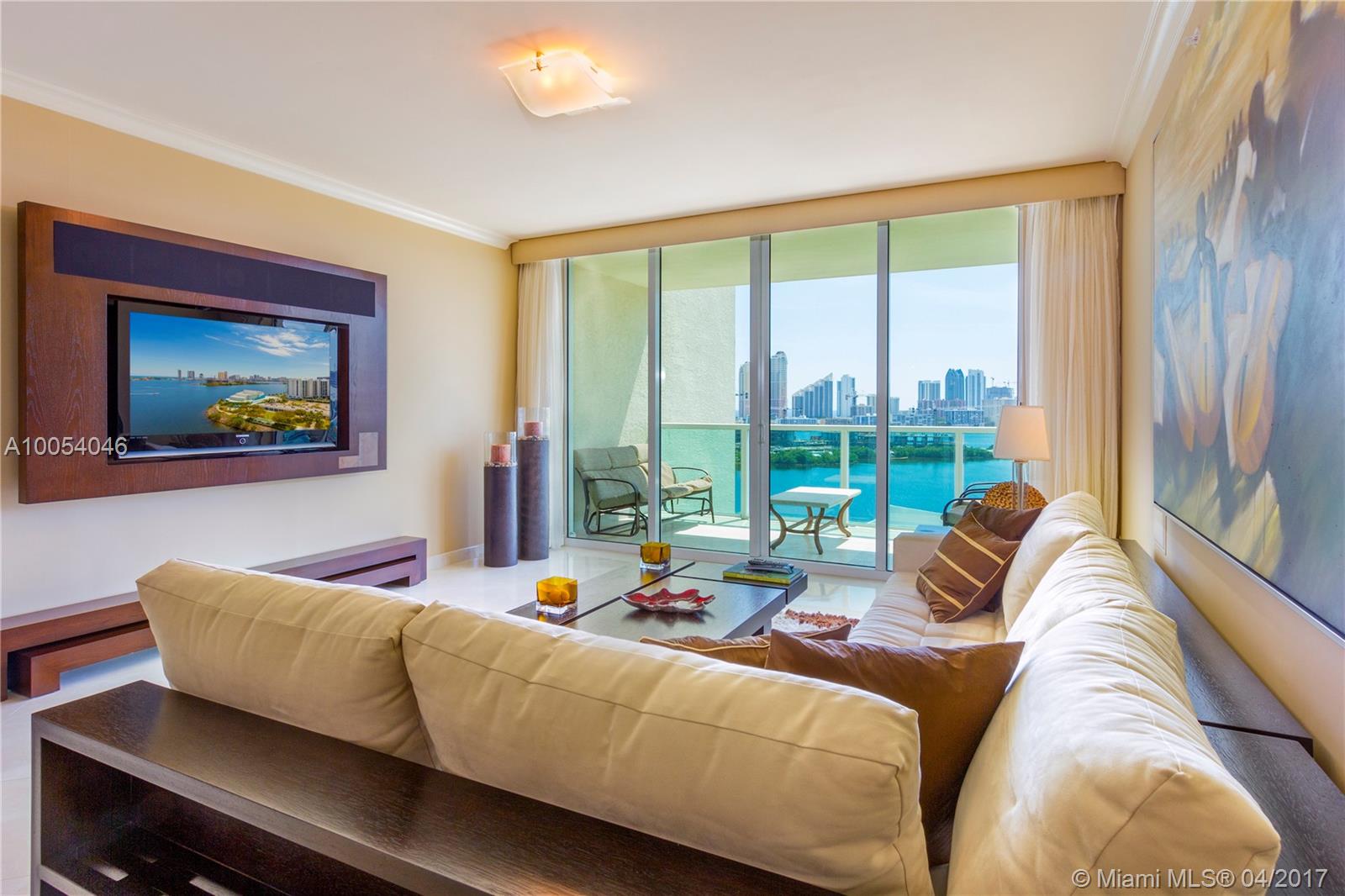 Elegant two-bedroom plus den turn-key residence w/ sweeping views of Biscayne Bay & ocean at Aventura Marina. This stunning home has been fully upgraded w/ marble & bamboo floors, custom solid wood/frosted glass doors, built-in cabinets & closets throughout. Full-service building features 5-star amenities incl. marina, gated entry, 24-hr. concierge, valet, 2 pools, hot tub, sauna, steam room & fitness center.
