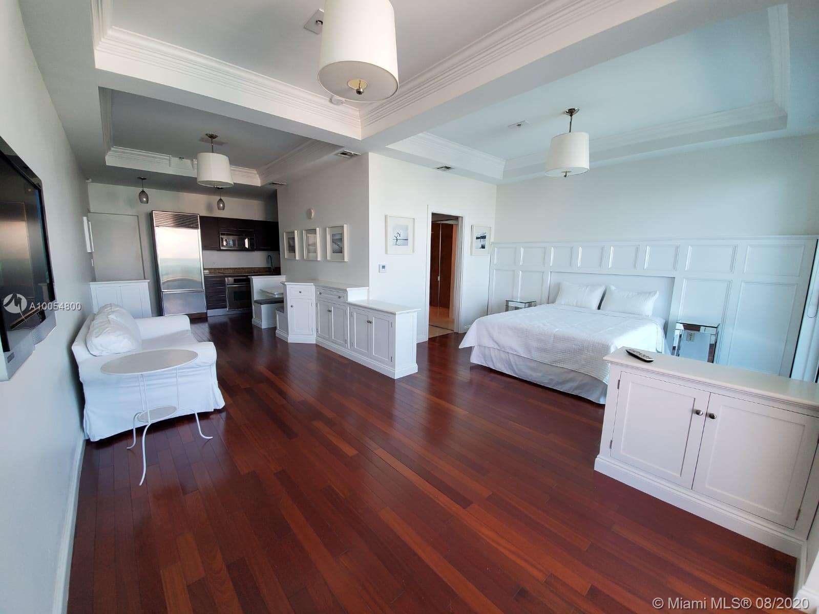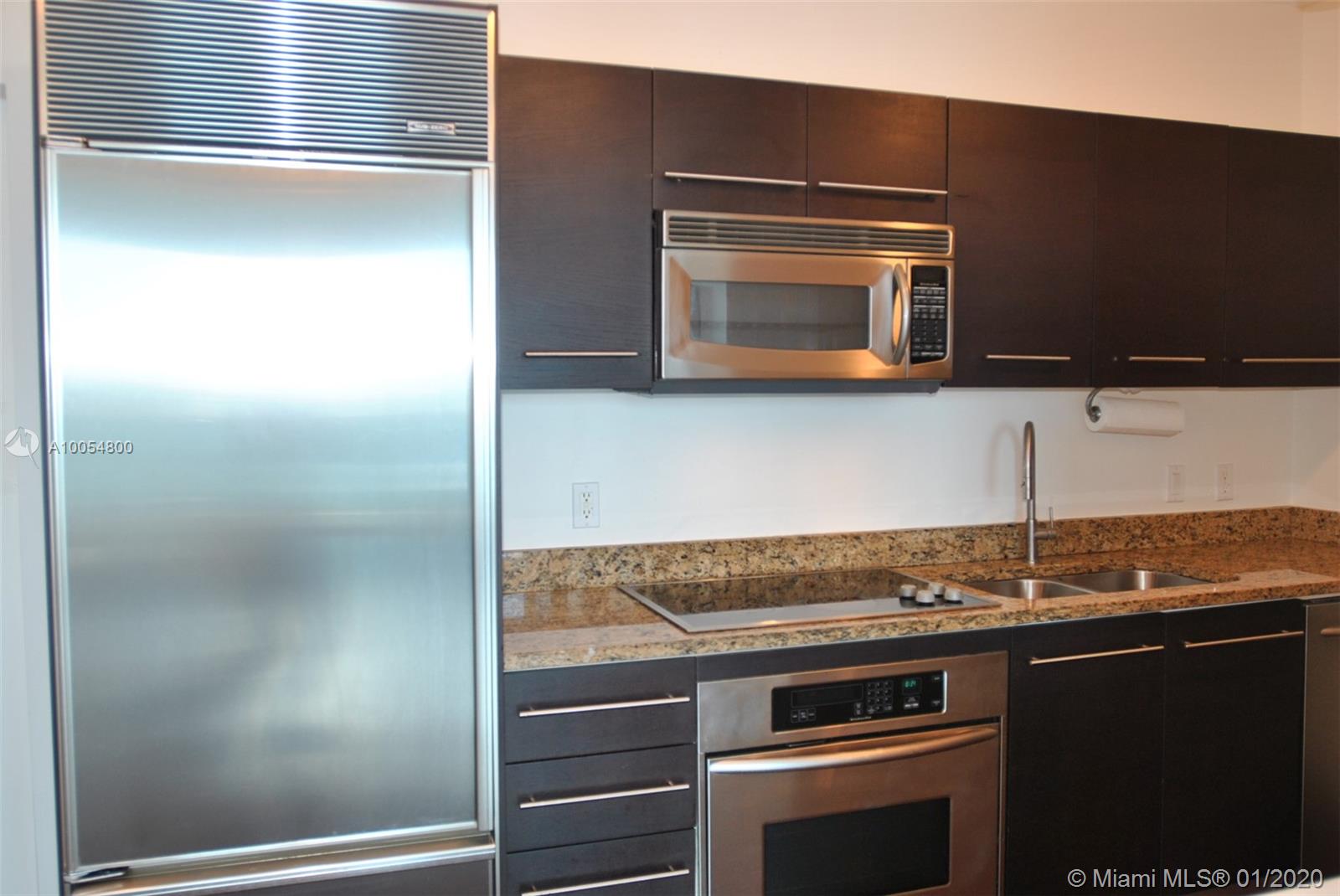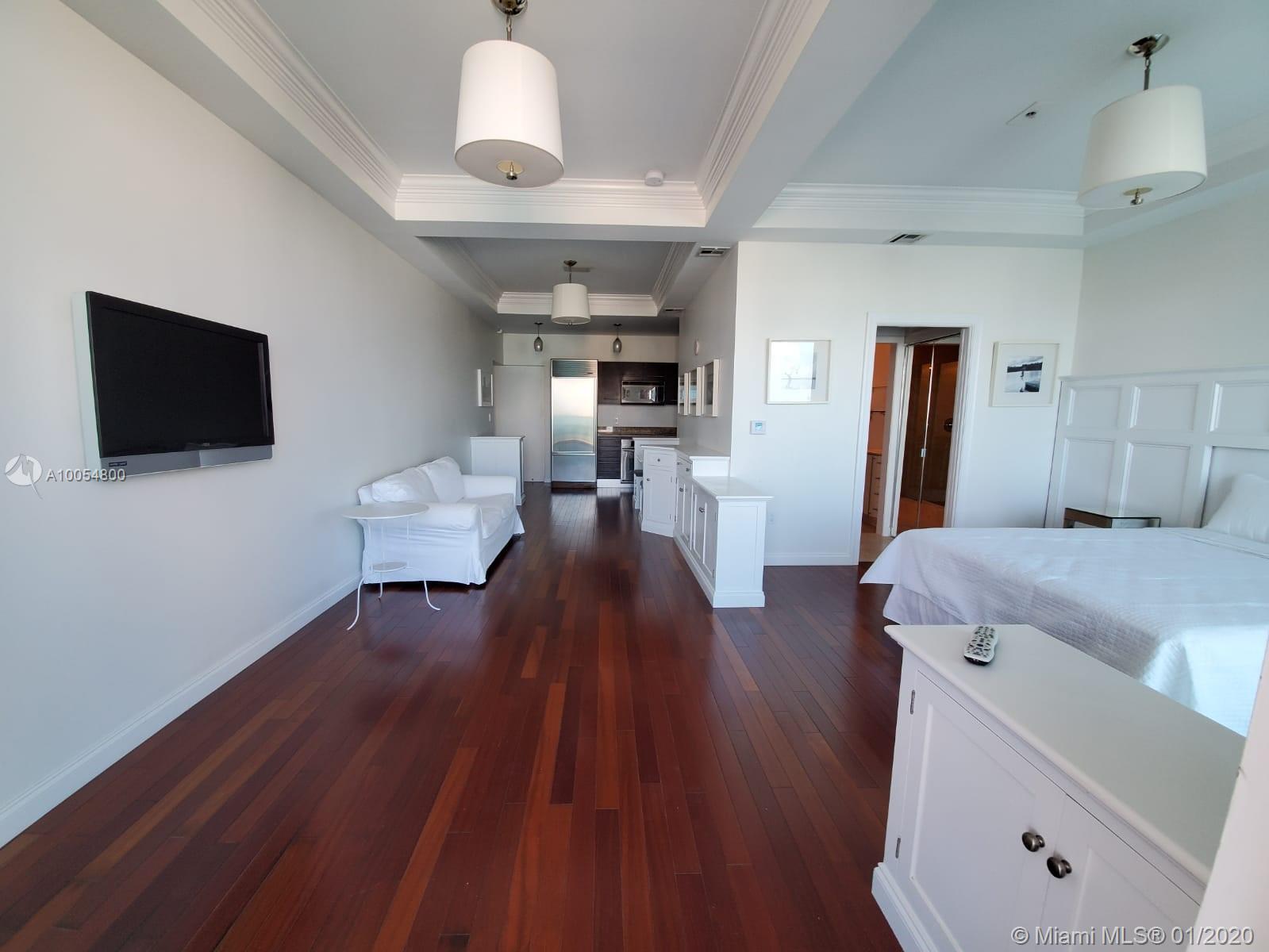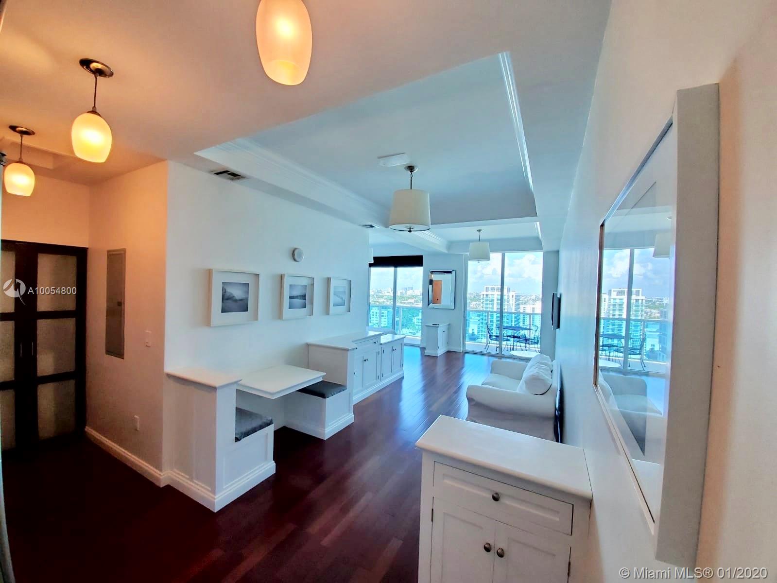 Unique Pied A Terre on high floor in a Bayfront building in the burgeoning Edgewater District. Customized space features built-in cabinets, breakfast area, and coffered ceilings. Expansive balcony with incredible Sunset views. Great opportunity to get into a luxury, boutique building at an affordable price. Contractor-owner will consider trading for a unit that needs work (with cash adjustment if required)