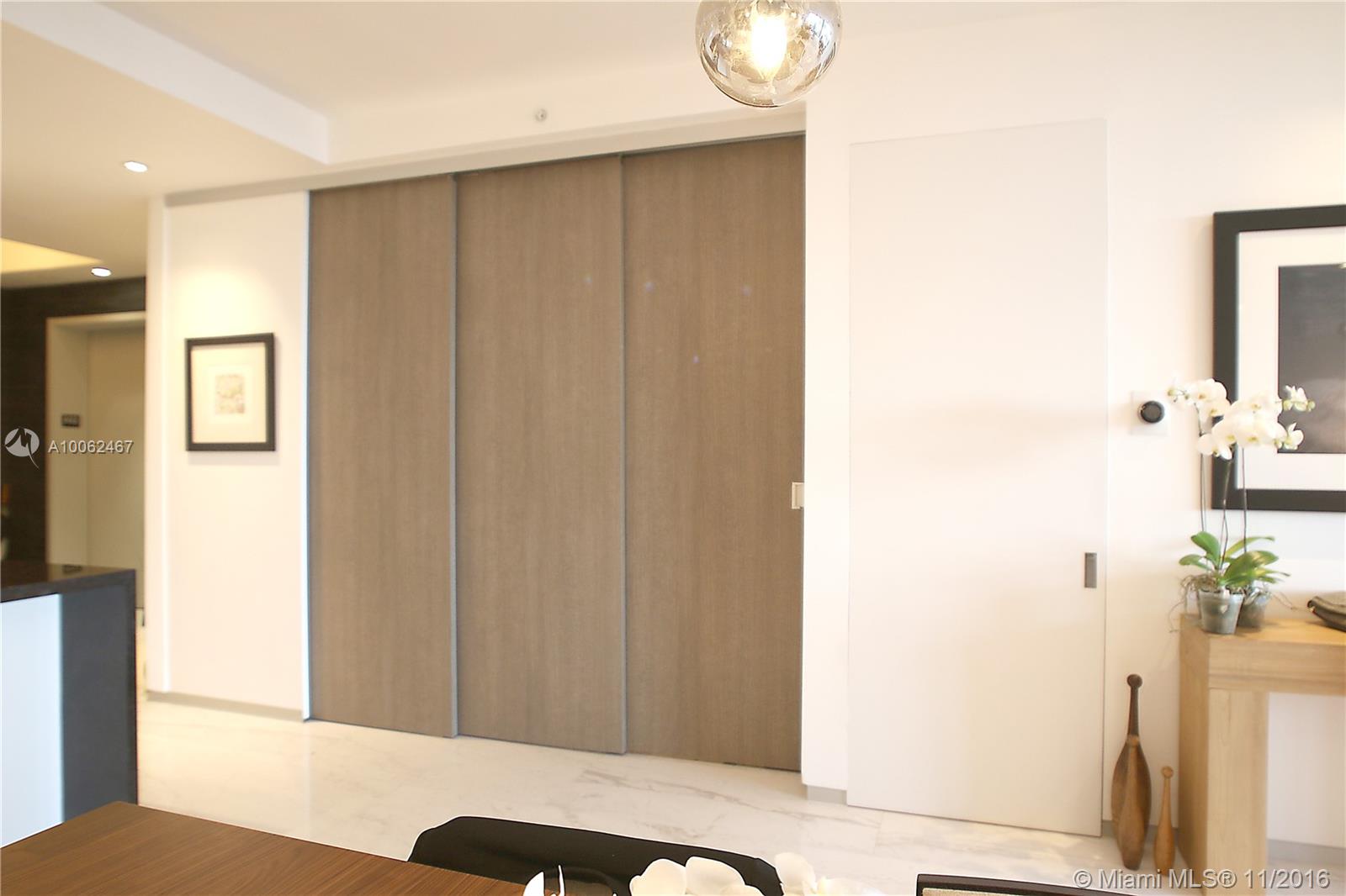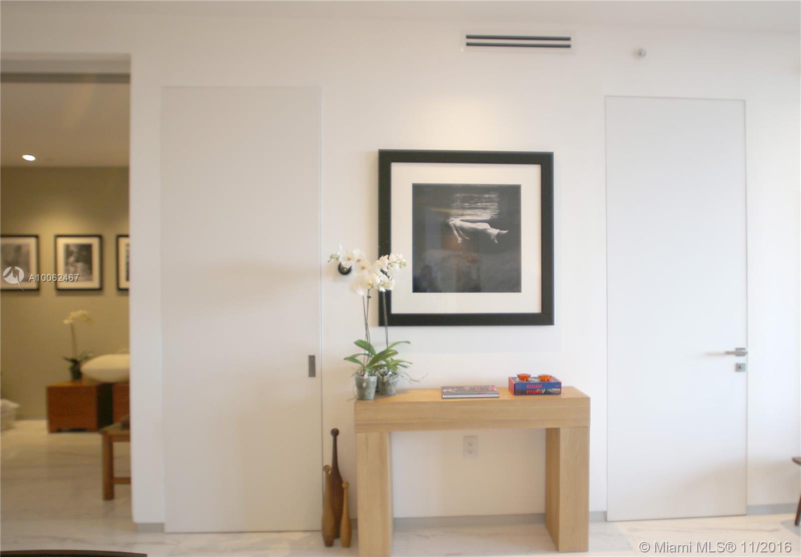 Completely renovated, upgraded and gorgeously finished residence at Marea. Recessed aluminum baseboards, "Apogee-like" open closets, 8 ft tall frameless doors, upgraded lighting with LED spots and custom lighting scenes, Sonos music system, 24 x 48 marble, full convertible Den with stacking doors (3rd bedroom). Residence 402 is the best finished residence in the building. Water views and huge balcony. Gym, Sauna, Private Pool and Beach VIP Services. Only 30 residencies. Realistically priced.