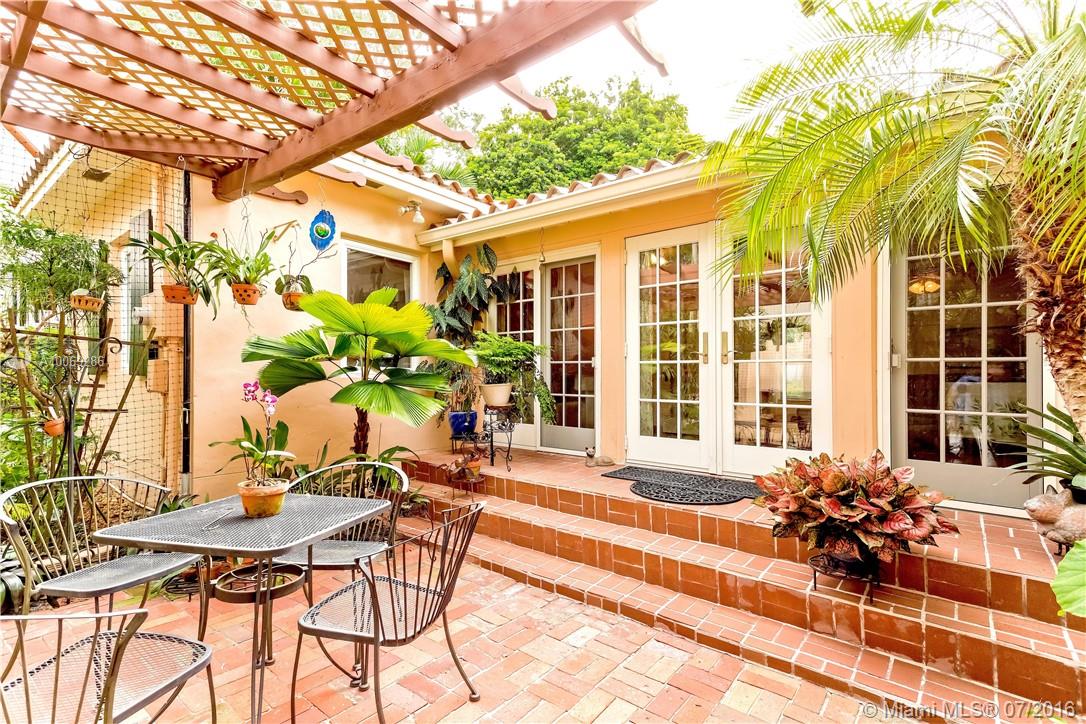 Charming mid-century Golden Triangle Gables residence features 3 bedrms, 2.5 baths & 1 car garage on impressive dbl corner lot w/exotic plantings providing tropical vistas fm every rm. Foyer entry to charming liv/din rms w/cathedral ceilings, hardwood flrs. Kitchen w/snack counter extends to Florida rm & out to trellised patio, a perfect sanctuary to unwind. Moments to The Biltmore, UM, golf courses & historic landmarks. An exceptional home in move-in condition & a pleasure to show! Many fine details.