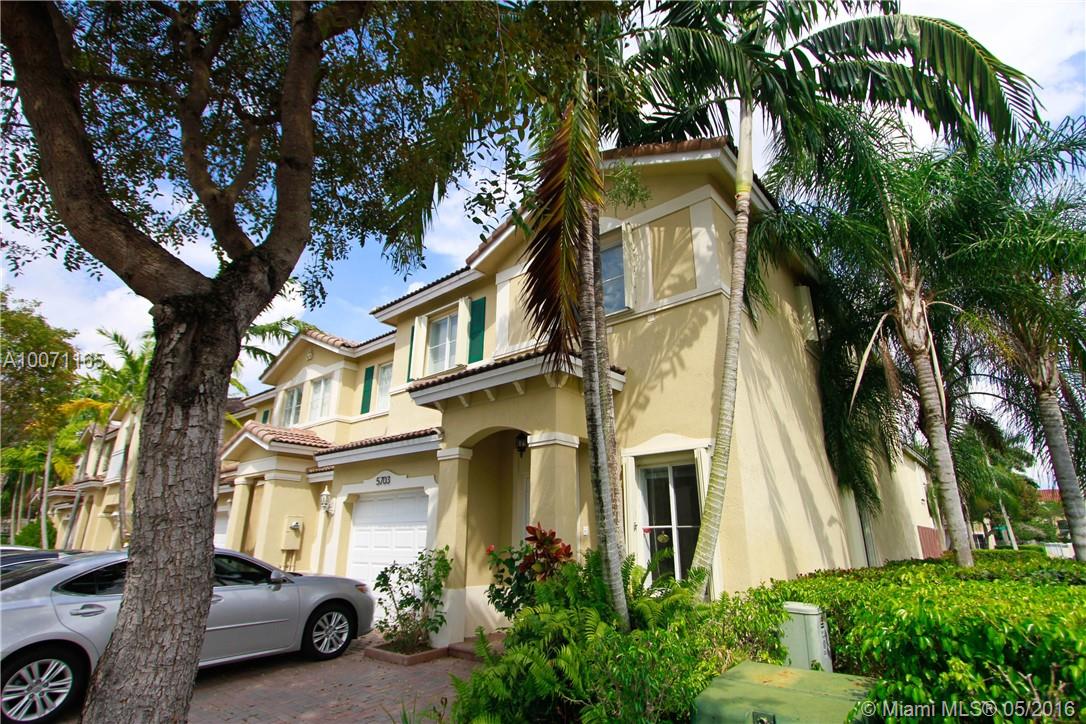 Immaculate 4/3.5 original owner home in mint condition. Townhome features kitchen with Corian counters S.S. app. & a walk in pantry. All bathrooms have glass doors, master walk-in closet & plenty of closet space. Paved backyard, accordion shutters, new energy efficient (4 tons) a/c unit, 1 car garage w/finished epoxy floor. Tiled 1st floor & beautiful white carpet upstairs. This corner townhouse sits on a sunny, bright lot w/unobstructed view from the 2nd floor. Playground sits across from the property.