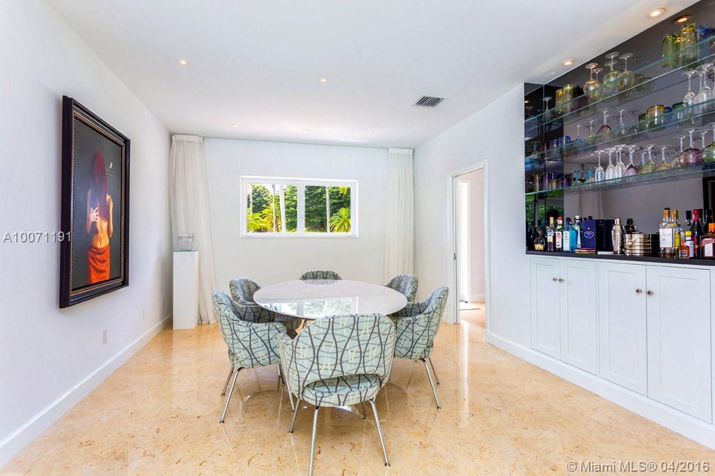 Elegant modern home for the sophisticated buyer located on prestigious guard-gated La Gorce Island, a private oasis of serenity. Four bedroom, three & half bathroom home with open floor plan and naturally lit living spaces, including a formal dining room with bar, eat-in kitchen and Florida room. Relaxing fireplace in living room. Oversized lot with private pool, cabana and patio.