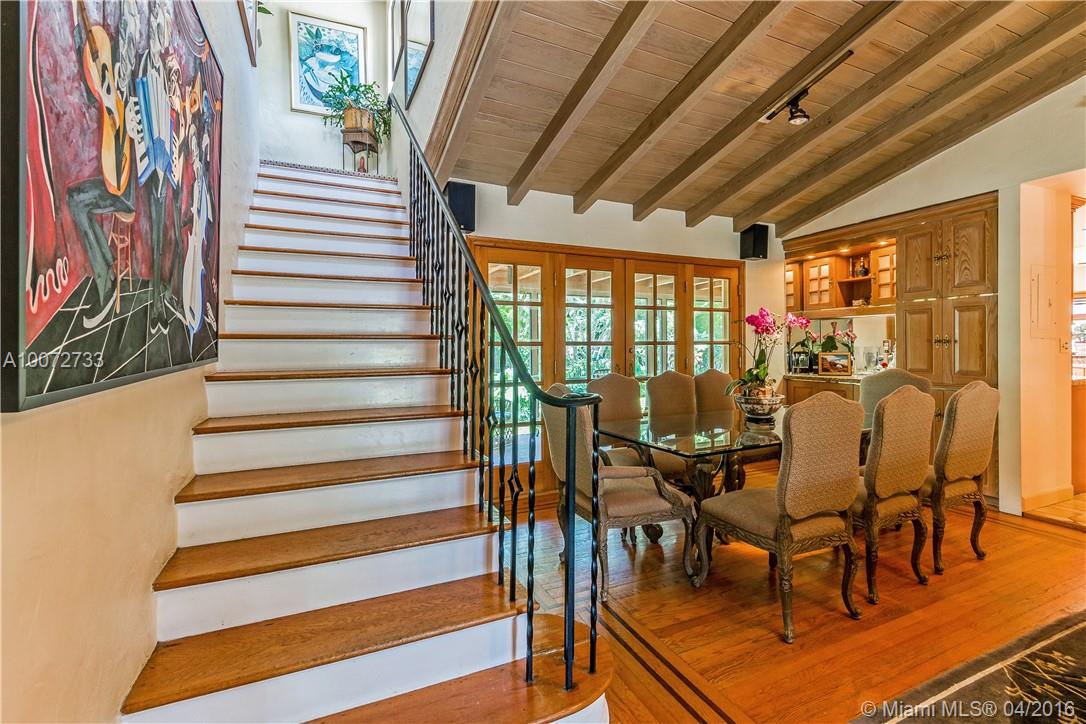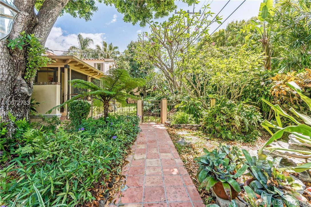South Gables gem from 1930’s on 15,750 sf lot. Enter through enclosed porch/foyer to living room with vaulted beamed ceilings and wood-burning fireplace. Wood floors, unique alcoves, and 1930’s detailing throughout. Master bedroom & bath on 2nd level. 2 car garage. Inside utility. Private grand entertaining with this Fairchild-type tropical landscaping pool and patio area with lots of green space too. This is an "as is - where is" sale. See additional details for more and exclusions.