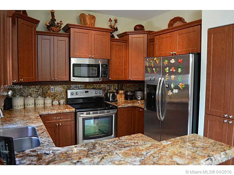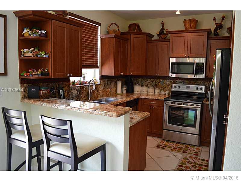 Completely remodeled interior, features new wooden cabinetry, Brazilian granite counter & hi-end SS appliances in kitchen. 18 inch diamond pattern ceramic tile throughout 1st level + designer paint through out 1st & 2nd floor, w/ upgraded light fixtures & ceiling fans (3). New solid wood bathroom cabinets w/ granite counters & upgraded shower fixtures. New laminate floor just installed on stairs & second floor. Pavers just installed in patio. Over $50K in upgrades! Bring your clients, it will sell itself!