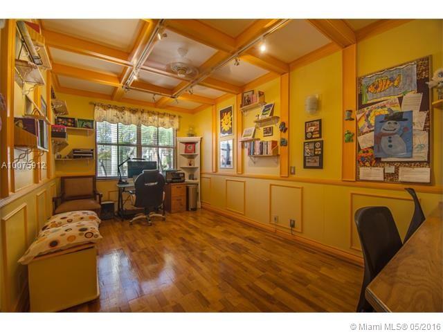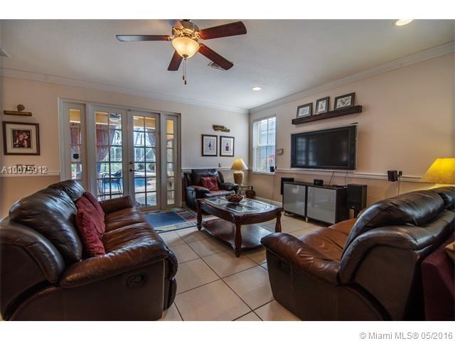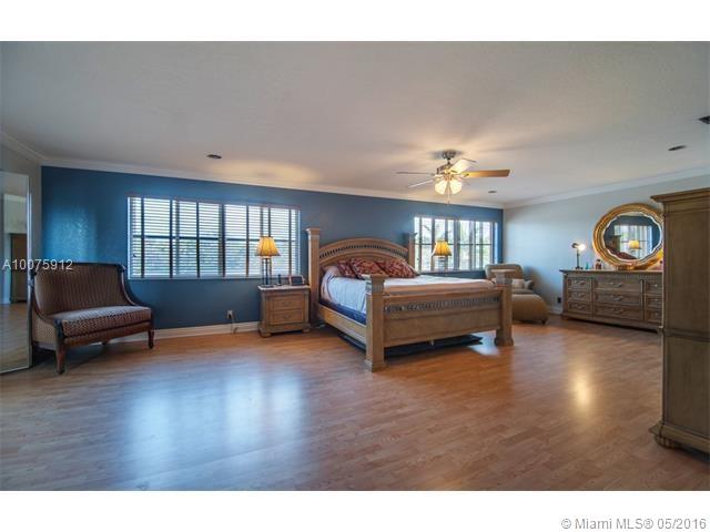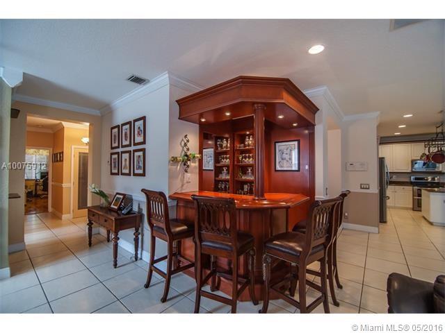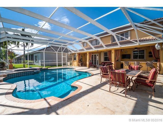 Absolutely Stunning 6 bedrooms (2 masters), including a custom office downstairs. 6 full bathrooms one of which is a cabana bath (addition to the standard model). Custom Kitchen with cooking island & granite counters, bay window overlooking pool and lake. Wine room and custom wood bar. Ceramic floors through living area and laminate wood floors upstairs and in bedrooms. Reading room area. Crown molding and wood details throughout the house. Full outdoor kitchen, perfect for entertaining. A must see!