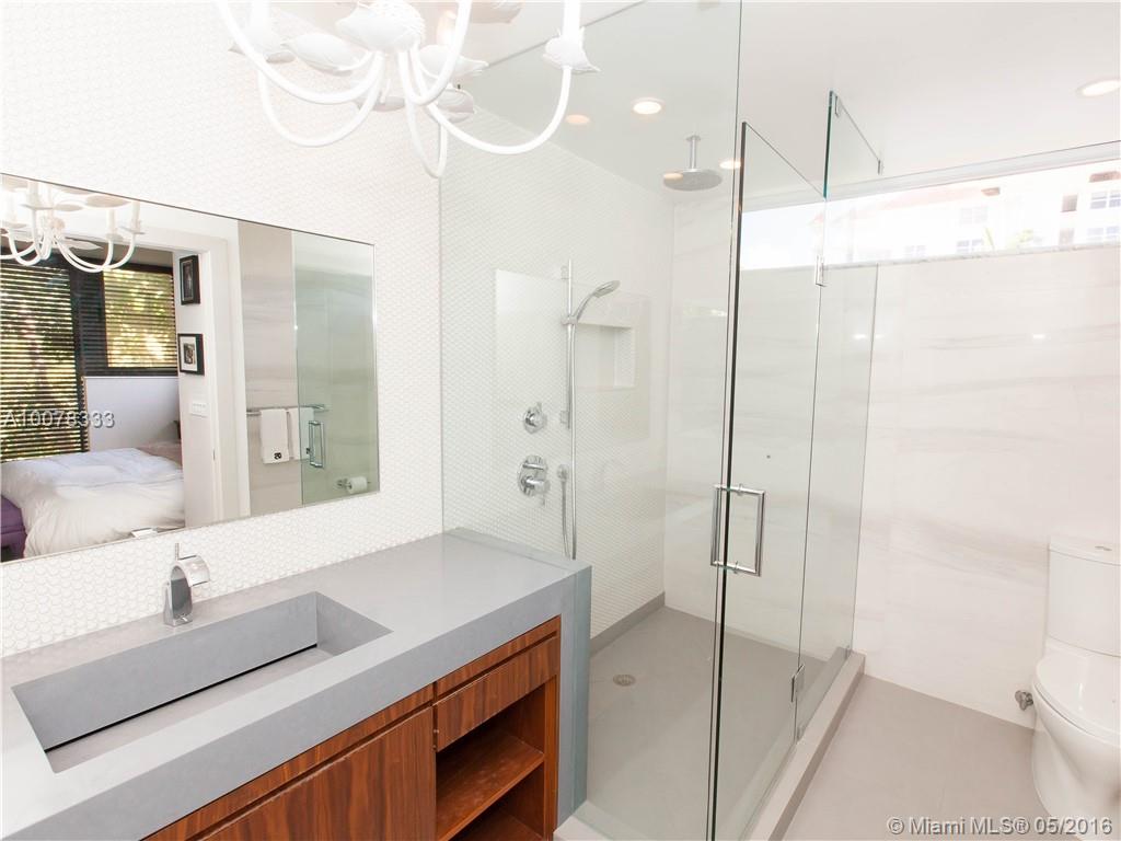 Architecturally unique Bay Harbor Islands tri-level corner townhouse featuring floor to ceiling walls of glass that bring the outdoors inside. Renovated open kitchen, modern master bathroom with large built out walk-in closet. Two oversized bedrooms with a convertible 3rd bd/office. Two car garage, large pool, an abundance of outdoor space with newer ipe wooden deck. Over 2,000 square feet of living space, as per owner. Boutique building with only 5 units, a rare find in Bay Harbor.