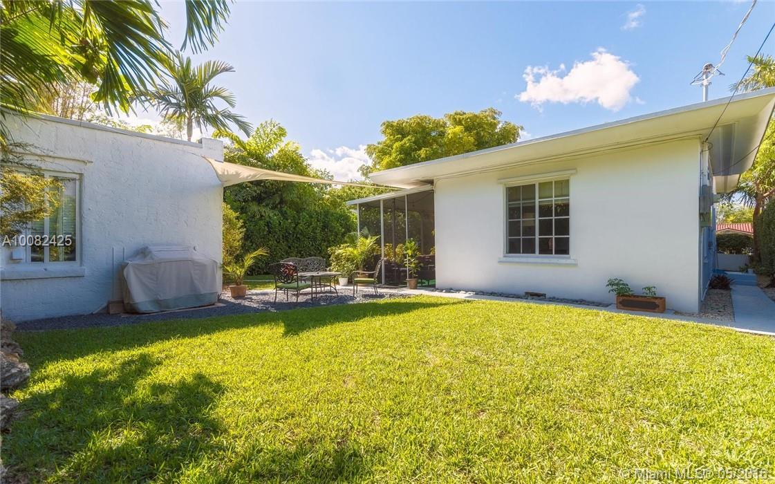 3 BEDROOMS AND 2 FULL BATHS IN MIAMI SHORES. DETACHED CONVERTED ONE CAR GARAGE IS NOW BIG STORAGE ROOM WITH LAUNDRY. ONE CAR CARPORT, PRIVATE FENCED YARD WITH ROOM FOR A POOL. COVERED AND SCREENED PORCH OVERLOOKS THE GARDEN. BIG ENTRY FOYER LEADS TO LIVING/DINING ROOM WITH FIREPLACE. BIG RENOVATED EAT-IN KITCHEN AND TWO UPDATED BATHS. HIGH CEILINGS, TILE FLOORS, MOSTLY IMPACT WINDOWS, CENTRAL A/C. GREAT NATURAL LIGHT, MOVE IN CONDITION.