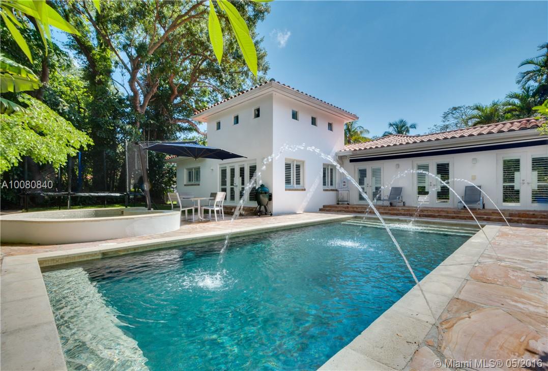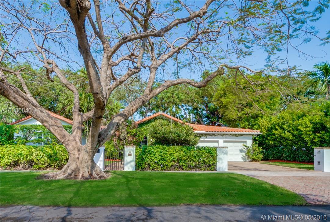 Quintessential Coral Gables 1-story residence that checks off all your boxes for your new residence in Miami on a quarter acre. This 5BR/5BA home has been totally renovated from head to toe including high-end kitchen & bathroom finishes, gorgeous Brazilian teak hardwood floors & impact glass windows & doors. Banks of French doors recently outfitted w/ Plantation shutters lead to the Flagstone deck & mosquito repellent system. Pebbletec heated pool w/ spa & tranquil fountains. Gated w/ 2 car gar. Must see!