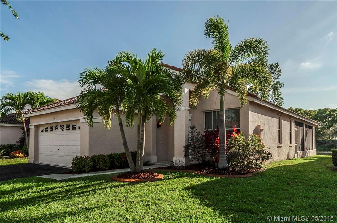 Move-in ready single story home in one of Weston's most popular communities "The Falls." Features 3 bedrooms, 2 bathrooms, 2 car garage, vaulted ceilings, extended screened patio with hot tub and private yard overlooking lake with no neighbors behind! Driveway recently resurfaced. Clean, bright and immaculate. Walking distance to A-rated elementary school.
