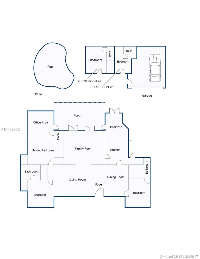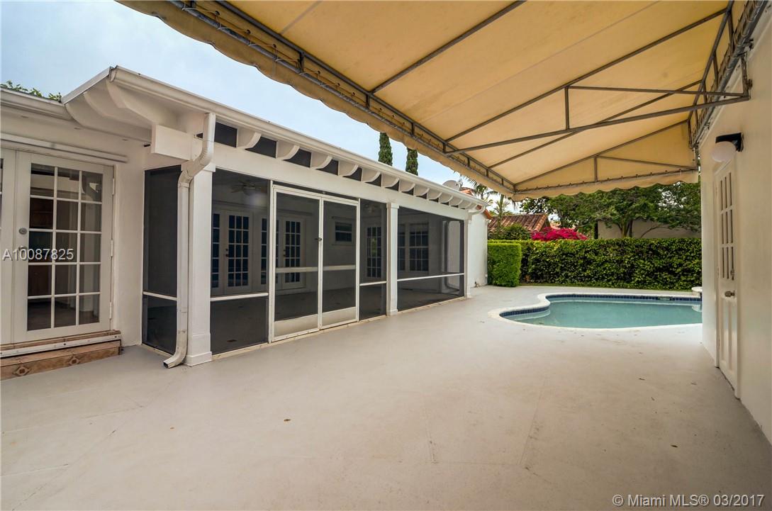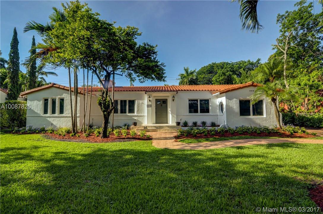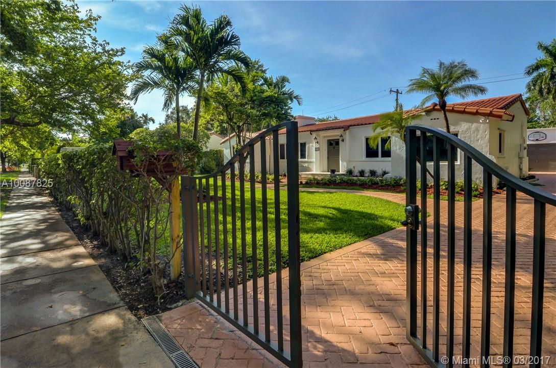 Impeccable and charming home centrally located. In one of the best areas of the Gables, across the street from Salvadore Park Tennis Center, and playground, walking distance to the Biltmore Hotel and Golf Course. Featuring an open floor plan, gleaming hardwood floors, wood beamed cathedral ceilings, formal living room with original fireplace, formal dining room, family room, Florida screened covered porch and eat in kitchen facing beautiful pool area. Main house 3/3 and 2/2 guest house.