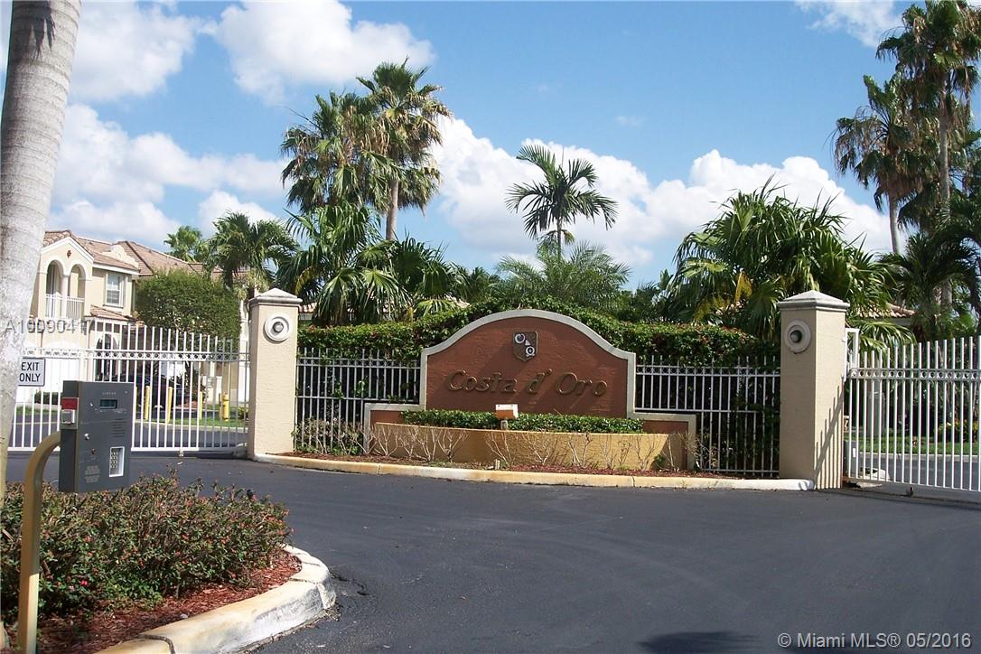 What a find in Doral!!! Costa D' Oro! Well maintained gated community. Move in condition contemporary townhouse, great floor plan with two master suites, updated kitchen with granite and stainless steel appliances, formal living room and dining room, family room, nice tile thruout first floor and second floor with wood. Nice corner unit! Great patio for dinners "Al Fresco"!