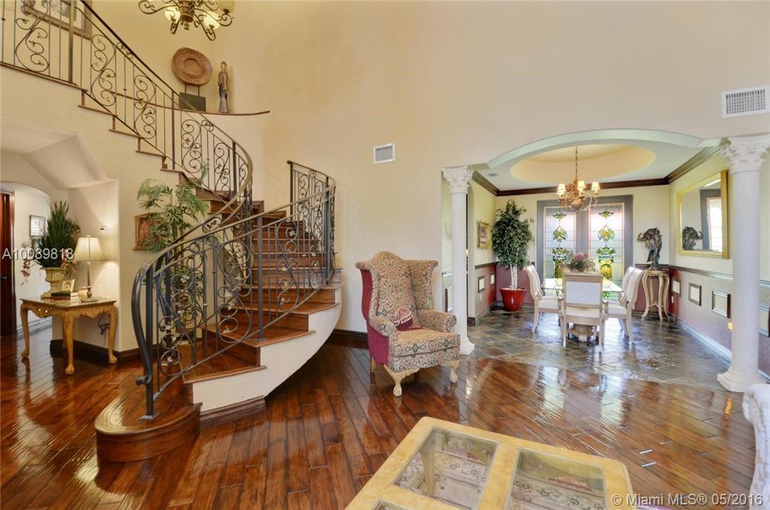 Custom made home that is timeless, understated, elegance & sophistication all at once. You are welcomed by a 10’ arch height Mahogany entrance door. The staircase with its ornate iron railings, oval ceilings & stain glass artwork on windows are a masterpiece. Features include: plantation shutters & silhouette on impact windows, French doors, state of the art chef’s kitchen, Walnut solid wood floors, mosaic & natural stone in bathrooms, architectural landscaping throughout exterior of home, and many more.