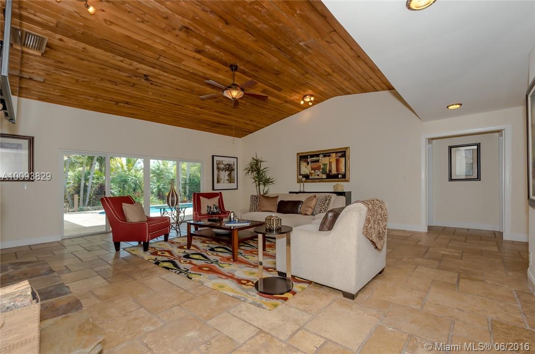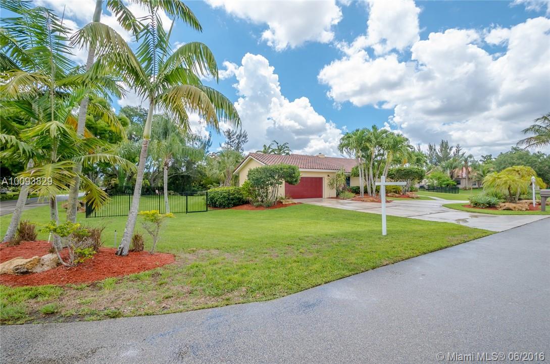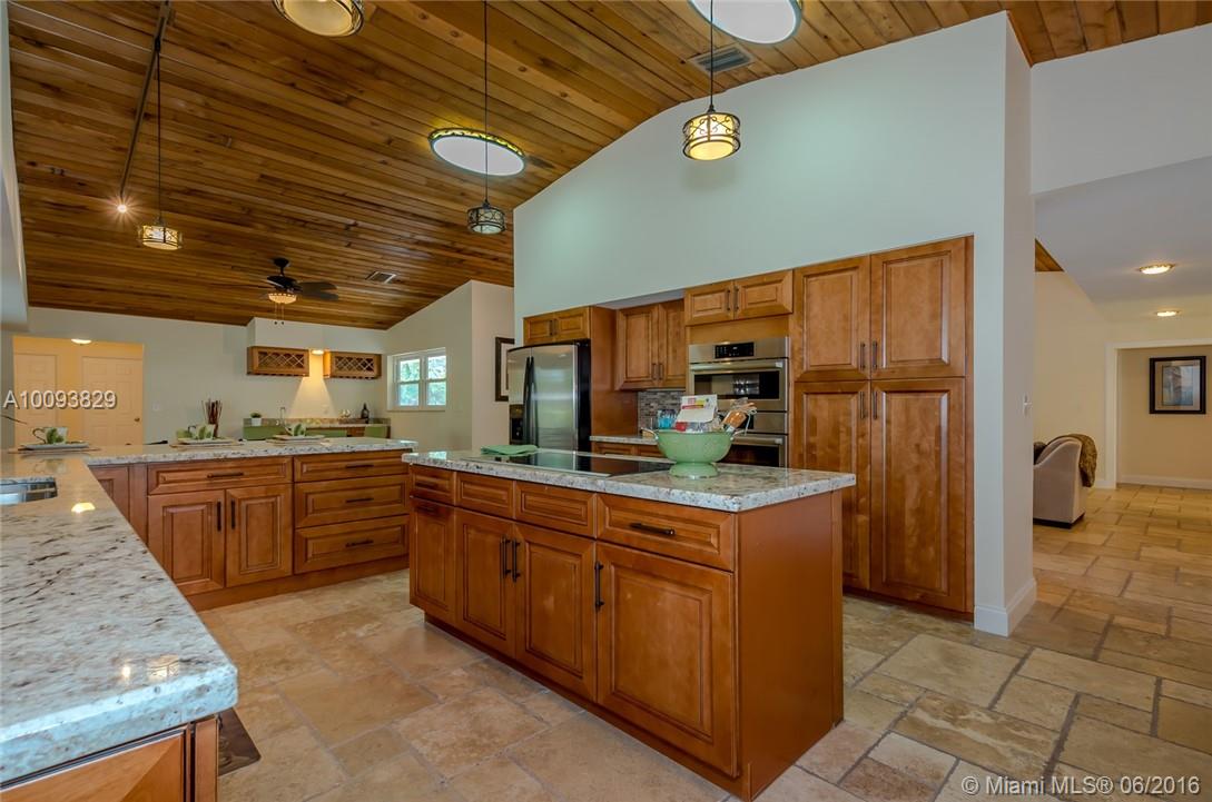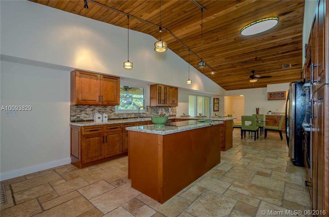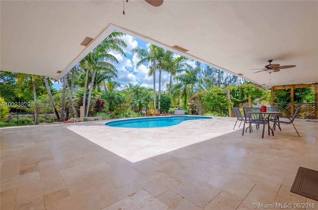 Beautiful country estate in quiet secluded neighborhood completely fenced on corner lot. Lush landscaping with new pool/patio area with Koi waterfall pond . remodeled kitchen/granite counters and wet bar, new Bosch cooktop, dishwasher, and double oven. Stone wood burning fireplace, volume cedar ceilings and living area and Master Bedroom. Large Master bedroom/bathroom retreat. Split bedroom plan. Library/office off living area hurricane impact windows/sliders. newer roof, side screened patio off kitchen
