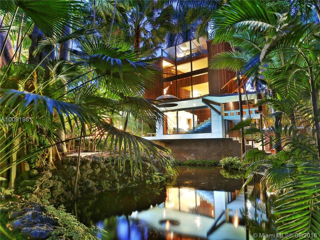 WOODSONG, THE SIGNATURE CREATION BY ICONIC "TROPICAL ORGANIC" ARCHITECT ALFRED BROWNING PARKER FOR HIS OWN RESIDENCE,, HOLDS COURT ON A MAGICAL & EXCEPTIONALLY PRIVATE 18,000 SF LOT SET ON ONE OF FLORIDA'S PREMIER PALM GARDENS. COMPRISED OF 3 PAVILIONS CONNECTED BY A 90 FT LAP POOL, EACH PROVIDING DISTINCTIVE VIEWS OF LUSH VERDURE & SINGULAR PALMS. THE PROPERTY IS FURTHER ENHANCED BY A KOI LAGOON & WATERFALL, SAUNA & CABANA SHOWER ROOM. NAMED BY WALLPAPER MAGAZINE AS ONE OF THE TOP 10 HOMES IN THE WORLD