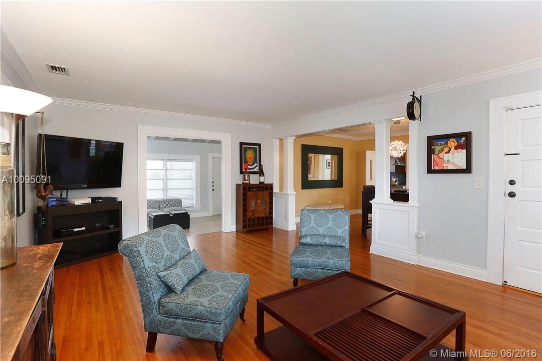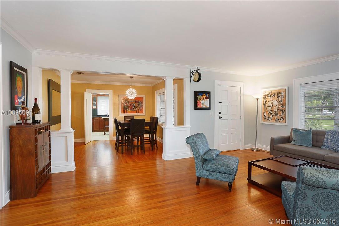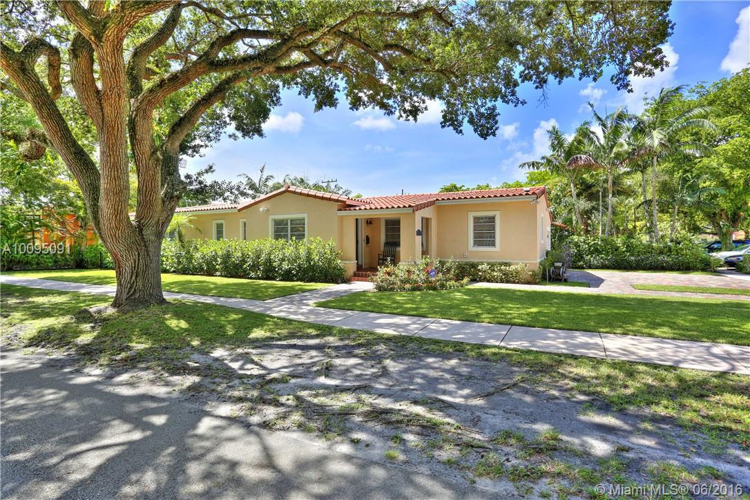 Enter in & feel at home in this impeccable, timeless Coral Gables property. The light & bright living spaces include spacious formal living and dining rooms, updated kitchen with stainless steel appliances & backsplash, family room opening onto the back yard. Hardwood & travertine floors run throughout this 3Br/2.5Ba home. Master suite has 2 closets & lovely bathroom. Situated on a corner lot on an extremely quiet street w/ a 1 car garage, pavered driveway, & charming front porch.