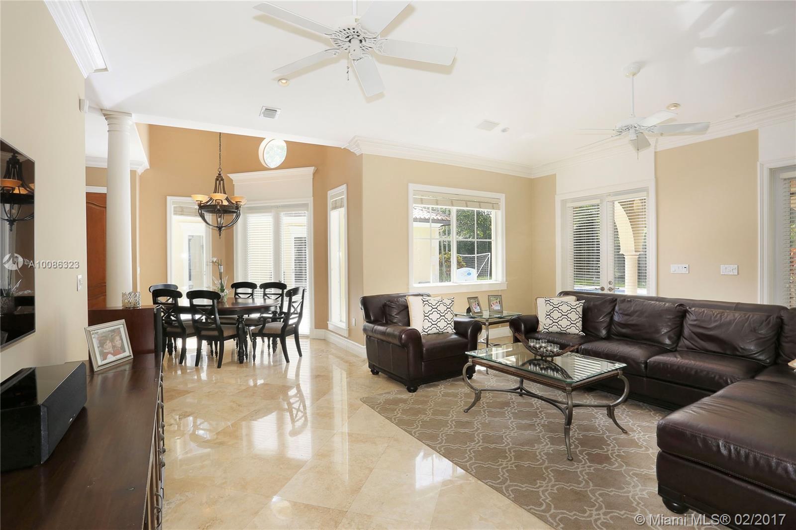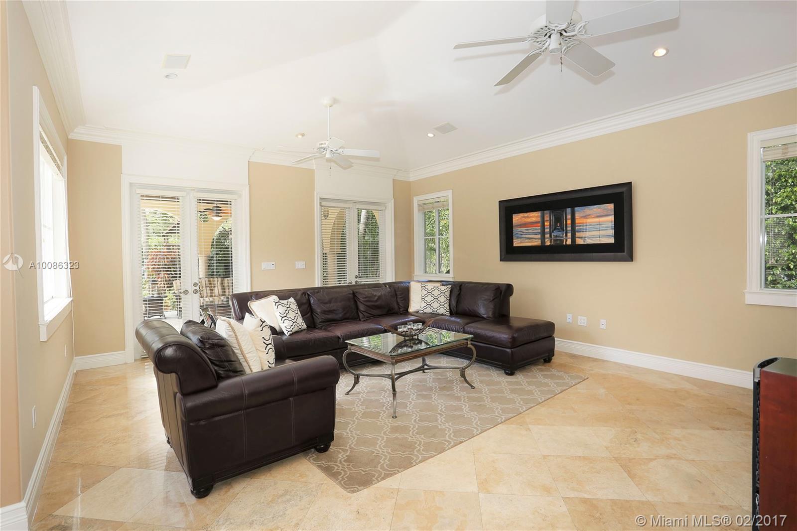 Exquisitely maintained property with excellent floor plan in north Pinecrest. Luxury appointments include natural stone and wood finishes, impact-resistant windows/doors, S/S appliances, crown moldings, coffered ceilings, built-in speakers, salt water pool filtration, air-conditioned garage with tile flooring, and much more. Beautiful loggia with tongue-and-groove ceilings overlooks large pool area, with yard large enough for grass and children's playground. Gated property, best offering under $2 M.