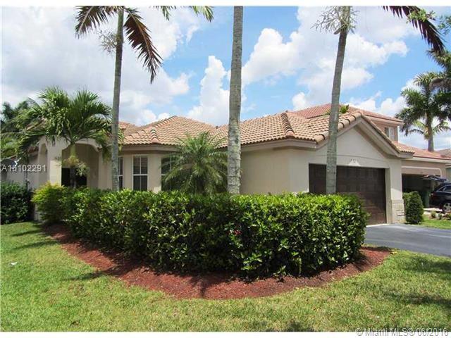 Beautiful & spacious one story home has a very cozy charm to it, nestled in Weston's sought after Gated community SAVANNA, features 3 bedrooms with new dark laminate floors, neutral tile floors in living areas, open & spacious new granite countertop kitchen with large breakfast area overlooking patio Covered patio perfect for BBQ's & entertaining family and guests. Fully fenced lot 2 car garage with new dropdown ladder - attic storage. Community resort style club house 2 pools + AAA Weston School District