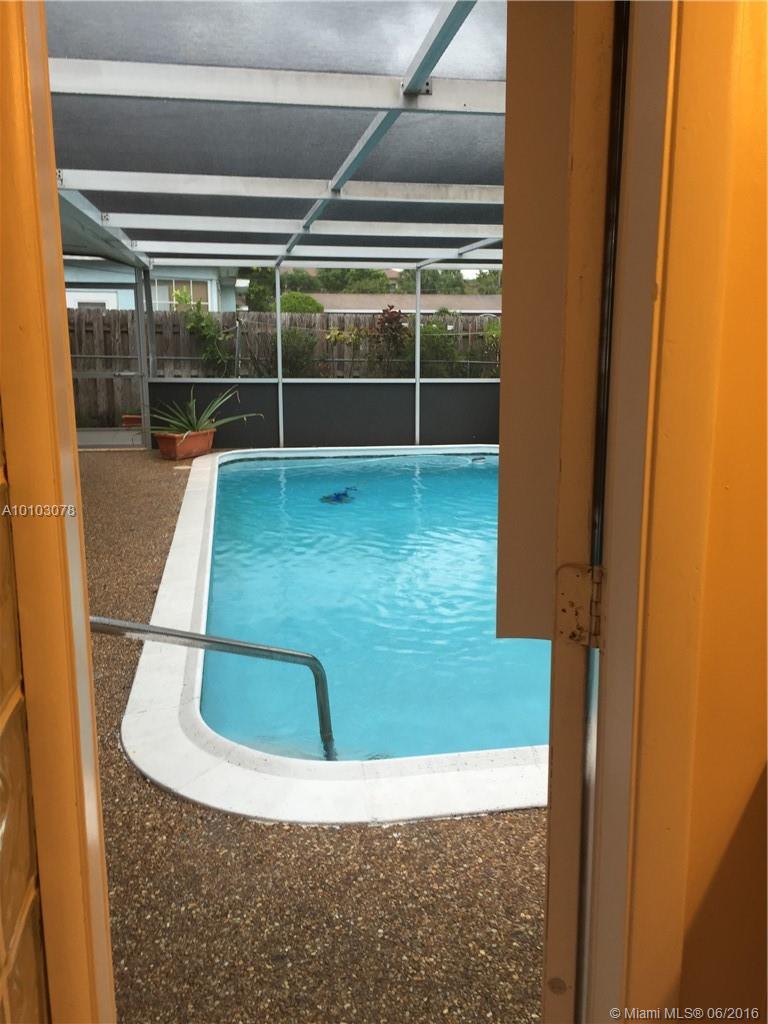 Beautiful and well kept one story pool house. 3 bedrooms and 2 bathrooms. The interior has tile throughout the house and carpet in the rooms. Garage converted into a Family Room. 4 car spaces outside for parking. Master walk in closet, from Master bathroom door to exit to the Pool. CLOSING WILL BE IN ONE CONQUEST TITLE & ESCROW.